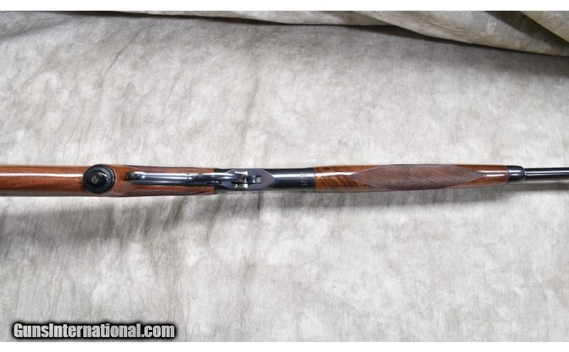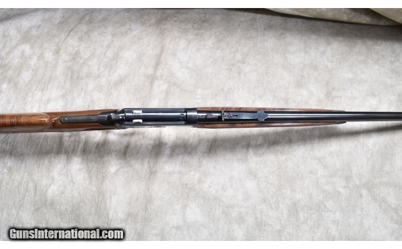 Description: This reproduction of the Winchester Model 53 features pistol grip, high grade walnut stock with a lot of figure. It is chambered in .32-20 Winchester and will be a welcome addition to any collection. It may have been fired and is technically used, but it shows like a new gun. .32-20 Winchester SOLD Chambers: 5 Metal Condition: Excellent. Wood Condition: Excellent. Bore Condition: Excellent. Barrels: 22-inch Triggers: Factory trigger. Stock Dimensions: 13-inch LOP. Fore End: Matching checkered walnut. Butt Pad: Steel "shotgun" plate. Weight: 6 lb - 9 oz Sights: `Brass bead and notch open sights. Item Location: Rogers |