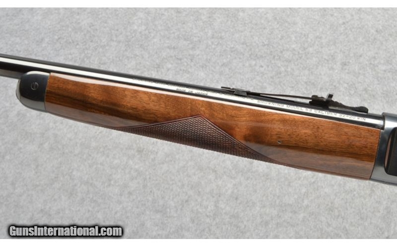 Description: Browning 53 Deluxe chambered in 32-20 WCF. Limited production rifle based on the Winchester Model 53 . Polished blue steel finish , High grade walnut stock with Winchester style "I" checkering. Overall Excellent, No Box. SOLD Manufacturer: 1990 Caliber Info: 32-20 WCF Metal Condition: Couple minimal scratches Wood Condition: Couple minimal handling marks Bore Condition: Bright and Sharp Barrels: 22 Inch, Tapered Stock: Capped pistol grip, High Grade Walnut Stock Dimensions: 13 " LOP Fore End: Checkered Walnut Butt Pad: Shotgun Style Blued Steel Weight: 6 Lbs 8 Ozs Sights: Sporting Open Rear Sight, Bead Front Item Location: Buda, TX |