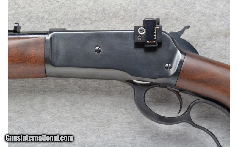 Description: This Browning Model 71 is a right hand lever action repeating rifle in .348 Win. Cal. It has a 24 inch barrel. A hooded raised front blade sight, adjustable buckhorn middle and a Williams adjustable peep rear sight. The stock is a smooth walnut pistol grip butt and smooth grip walnut forearm. This very nice looking rifle is in excellent condition. SOLD Manufacturer: Made in Japan. Caliber Info: .348 Win. Chambers: Lever Action 4+1 half tube magazine. Metal Condition: Excellent. Wood Condition: Excellent with a couple of minor handling marks. Bore Condition: Excellent. Barrels: 24 inch blued. Stock: Smooth walnut pistol grip. Stock Dimensions: LOP 13 1/8 inches. Fore End: Smooth walnut grip with a black steel cap. Butt Pad: Checkered black steel plate. Weight: 8 lbs. 7 oz. Sights: Hooded raised blade front. Adjustable buckhorn middle. Williams adjustable peep rear. Item Location: Richfield, WI |