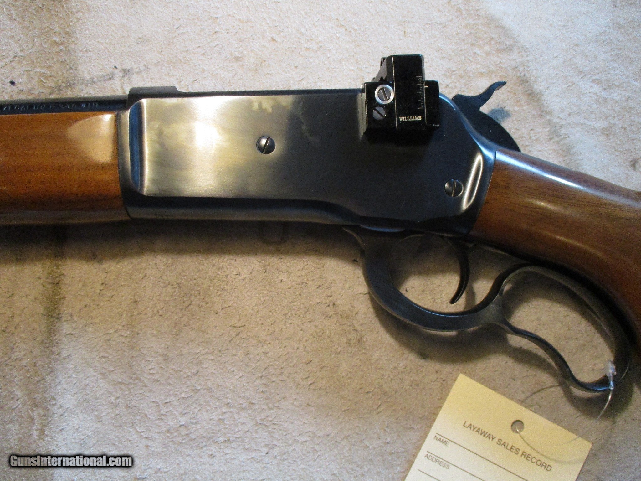 Description: Browning model 71 Carbine, copy of the Winchester 71. SN is 025xxPR1C7, made in 1987. Factory finish on both wood and metal, factory butt plate. Comes with the peep sight as shown, and also the factory open sight. Comes in the factory box numbered to the gun, nice clean classic gun! We will trade for silver and gold. We accept personal check, any certified funds, Venmo or Zelle. We can also take your credit card, +3%. Email me if you would like these pictures sent to you, they will come through bigger and better than on the listing page here. We do offer Layaway. Our standard terms are 25% down, 90 days. Initial deposit is not refundable. Email me with any questions. Please check your local laws to confirm it is legal to own in your state! Buyer pays $35 shipping and insurance to your FFL in the lower 48. AK, HI or PR is extra. I will ship to California, as long as it is legal, NO PROBLEM! All my guns come with a non-firing, 3 day unconditional return privilege, from the day UPS delivers to your dealer. Buyer pays shipping both ways if the gun comes back. Please make sure to make it to your FFL to inspect within the 3 days. If your gun doesn't have a box or case we can add a new hard case by PLANO for secure shipping for $30 if the buyer wishes (highly recommended, cheap insurance, really helps keep the UPS monster from eating my guns!). I am a licensed FFL, and will include a copy of my FFL with the gun for your dealer’s records. I will ship to a C&R if the gun is eligible. I will ship to California, but you need to confirm the gun is legal where you are, California or other. WE BUY AND CONSIGN GUNS AND GUN COLLECTIONS! We will travel to pick up collections! I am always looking for good clean, old original Winchesters to buy, consign, or trade, especially Pre '64's model 70's and model 54's. WE ALSO TRADE FOR CLASSIC CARS AND TRUCKS! We also trade for gold and silver. SOLD Rifle Caliber: .348 Winchester Manufacturer: Browning Model: 71 Barrel Length: 20 Condition: Used in box |