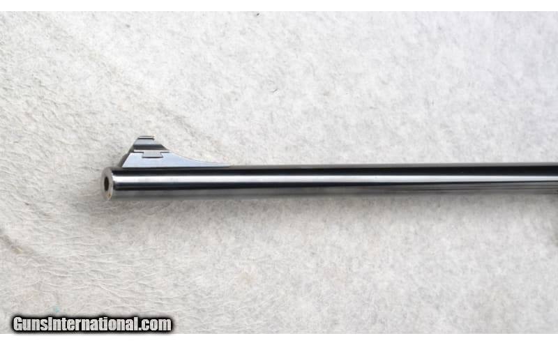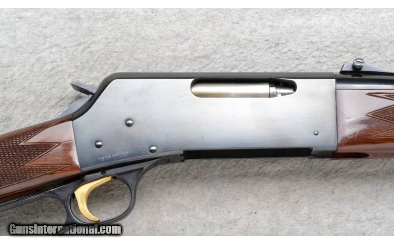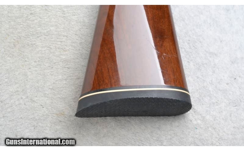 Description: This Browning Model 81 BLR is a right hand lever action repeating rifle in .22-250 Rem. Cal. It has a 20 inch barrel. A raised blade front sight and an adjustable notch middle sight. It is drilled and tapped for a scope mount. The butt stock is a checkered grip high gloss walnut straight grip. The forearm is a checkered grip high gloss walnut with a barrel band. .22-250 Remington SOLD Chambers: Detachable Magazine. Metal Condition: Very Good. Receiver has a little very minor freckling and use marks. Wood Condition: Good. Has some handling/use marks. Bore Condition: Excellent. Barrels: 20 inch. Triggers: Grooved. Stock Dimensions: LOP 13 3/4 inches. Fore End: Checkered grip high gloss walnut with a barrel band. Butt Pad: Browning black rubber pad. Weight: 7 lb. 2 oz. Sights: Raised blade front. Adjustable notch middle. Drilled and tapped. Item Location: Richfield, WI |