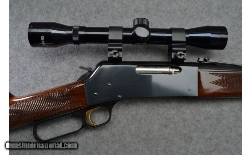 Description: A nice Browning 81 BLR lever action rifle in .243 Winchester. This rifle features a 20 inch bright blued barrel with factory sights. It has a scope bases and rings with a Tasco 4x32mm scope mounted on the receiver. This rifle is clean with nice bluing and a nice walnut stock and forearm. It comes with 1 magazine. Ready for your next hunt. SOLD Caliber Info: .243 Win. Chambers: Lever action repeater. Metal Condition: Very good. Wood Condition: Good with light handling marks. Bore Condition: Shiny and bright. Barrels: 20 inch brightly blued barrel. Triggers: Browning gold trigger. Stock: Walnut straight stock with checkering. Stock Dimensions: 13 7/8 inch LOP. Fore End: Matching checkered walnut forearm. Butt Pad: Browning black rubber pad. Weight: 8.0 lbs. Sights: Factory sights and Tasco 4x32mm scope. Extras: 1 magazine. Item Location: Woodbury, MN |