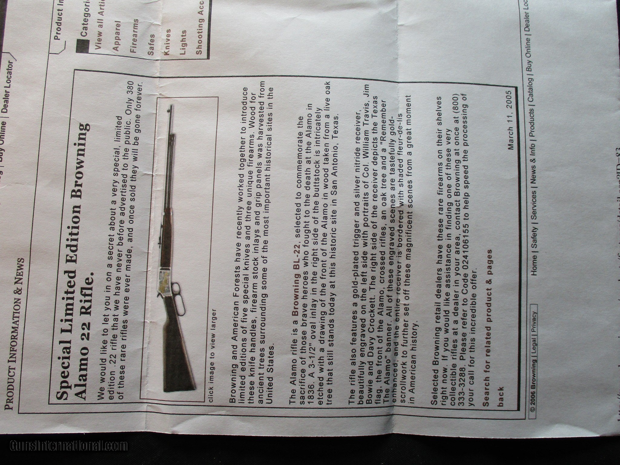 Browning BL-22 Alamo Commemorative, Travis Bowie Crocket, NIB, 2004
