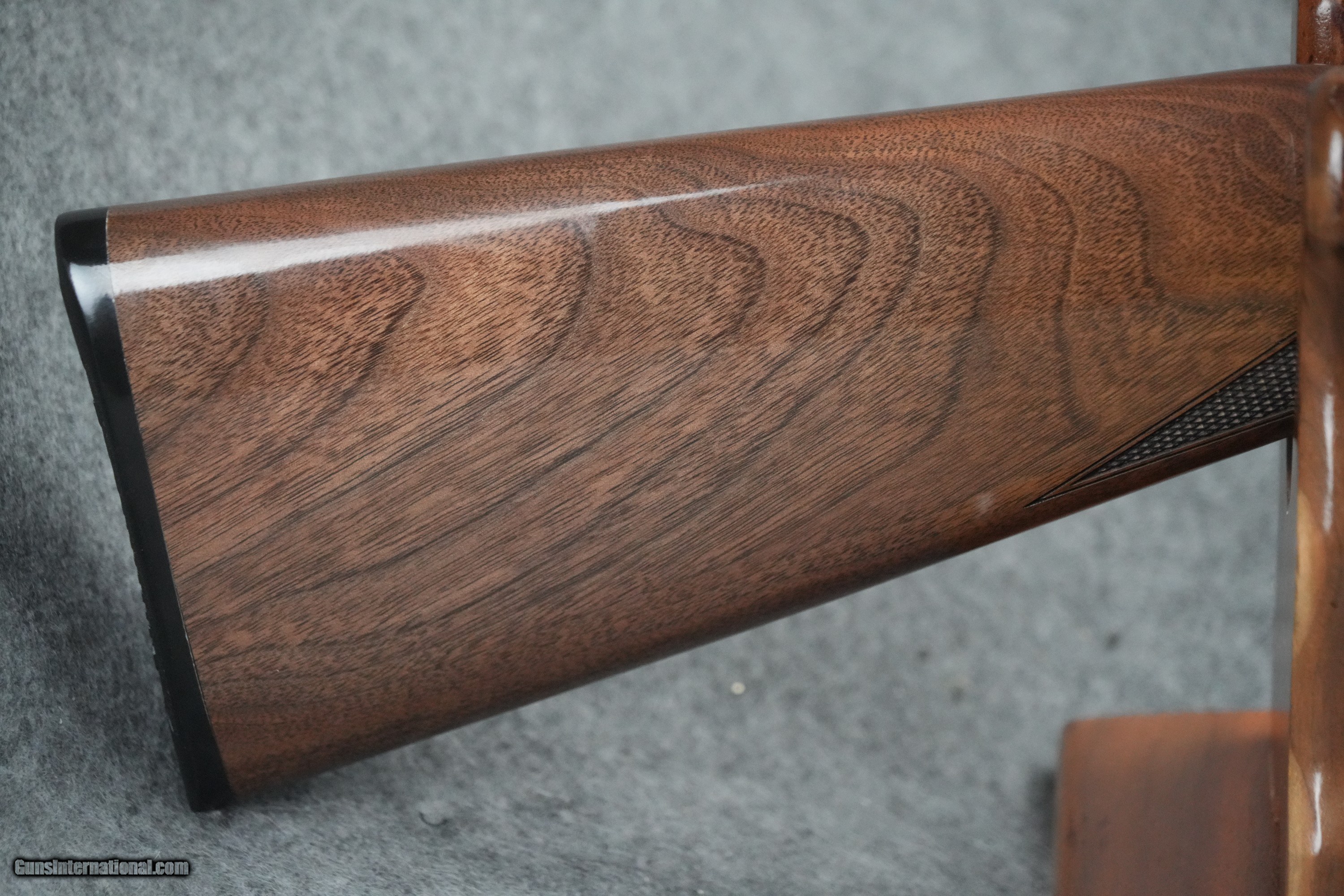 Description: Take a step up to Grade II. The BL-22 is something that is often found on a wish list. You may ask why? Simply because it is the premier lever action 22 of all time. It gained this distinction for several reasons. Superb quality, solid function and the speed of 33-degree lever throw. The scroll engraved receiver, checkered walnut stock and the added touch of a classic Browning gold-colored trigger also set it apart. There are other lever-action 22 rimfire rifles available, but no other has the features, reliability, quality and accuracy of the BL-22. All the features, fast. Speaking of fast and features, the highlight of the Grade I BL-22 is the short 33° lever throw that makes cycling faster and easier for shooters. The easy to load tubular magazine holds any combination of 22 short, long and long rifle ammunition, all of which are on the menu for the BL-22. The magazine tube -- once loaded -- locks securely in place. The BL-22 features quality muzzle to butt that rivals other Browning firearms. Steel receiver, very nice. From the machined steel receiver to the fit of the finely finished wood, these superb rifles are Browning's through and through. Bring one along the next time you head into the field on a varmint hunt or just to roll a few tin cans. BL-22 Grade II Features Blued receiver finish Scroll engraving Gloss finish American walnut stock with traditional point checkering pattern Tubular magazine Caliber 22 S L LR Barrel Length 20 Overall Length 36 3/4 Length of Pull 13 1/2 Drop at Comb 7/8 Drop at Heel 1 1/2 Weight 5 lbs 0 oz Magazine Capacity 15 Twist Rate 16 Barrel Finish Polished Blued Stock Finish Gloss Wood Grade Grade I Receiver Finish Polished Blued Chamber Finish Polished Barrel Material Steel Barrel Contour Light Sporter Stock Material Black Walnut Recoil Pad Plastic Buttplate Checkering Cut 20 LPI Sling Swivel Studs None Receiver Material Steel Trigger Finish Gold Plated Bolt Slide Finish Brushed Polish Magazine Type Tubular Trigger Material Alloy Trigger Guard Material Steel Trigger Guard Engraving Buck Mark in Gold Drilled and Tapped for Scope No SOLD Rifle Caliber: .22 Long Rifle Manufacturer: Browning Model: BL-22 Barrel Length: 20" Barrel Condition: BRAND NEW |