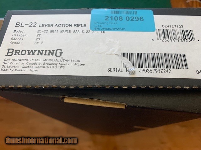 BROWNING BL GRADE 2, 22 LR., MAPLE STOCK, NEW UNFIRED IN THE BOX