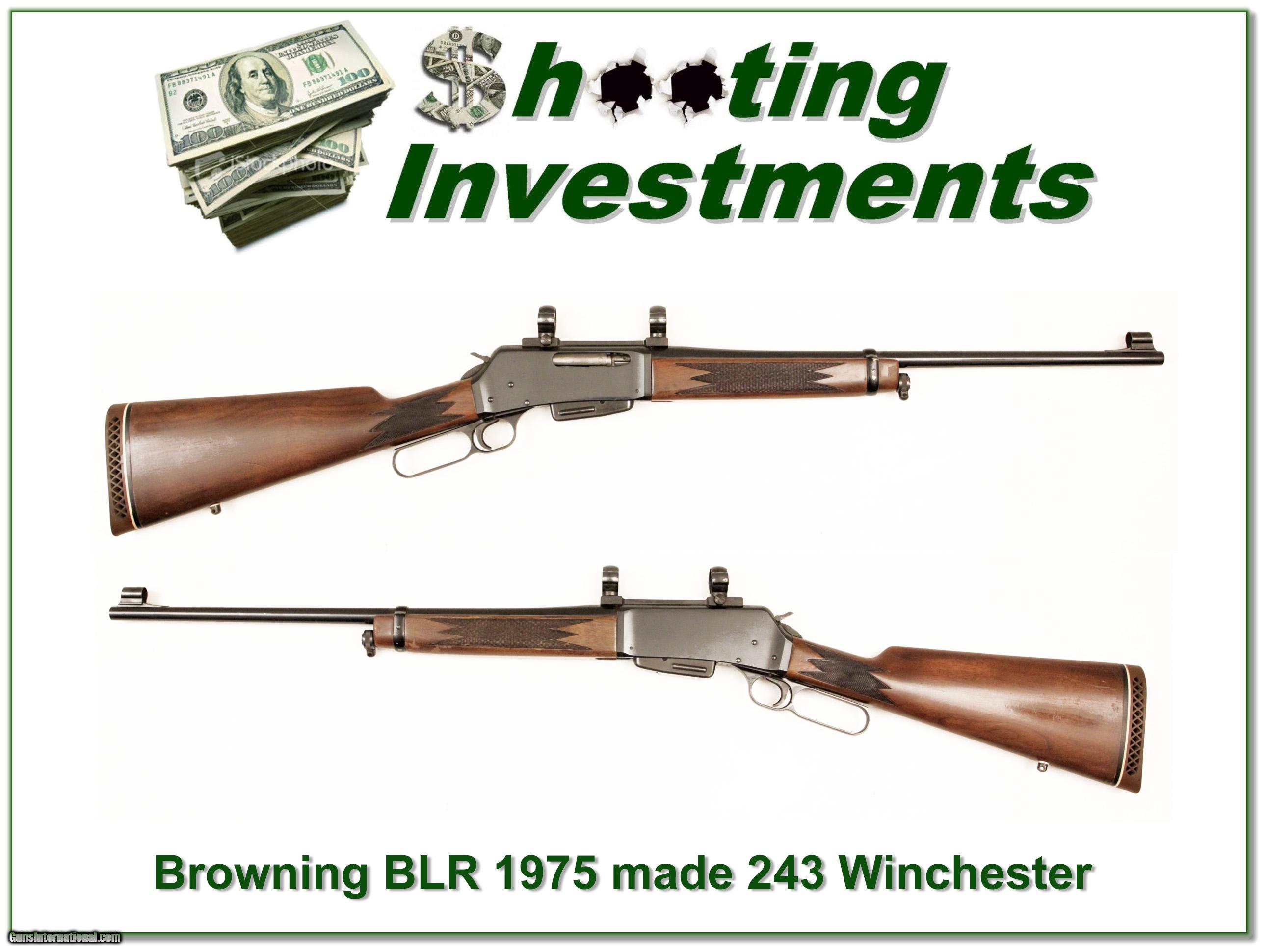 Description: This is an early Browning BLR in the harder to fine 243 Winchester. These earlier guns had machined steel receivers. This one was made in 1975, the first year they were made in japan and has some use as seen. It will make a classic BLR and is one you can use. Shipping and insurance is $35 or $15 more if you want it shipped in a new Plano hard case. Please email me with any questions or larger pictures. (I now consign quality firearms only 10%! Let me know if you have any you would like to sell!) [16-0508] Payment: Payment is by Money Order, Cashiers Check or Personal Check. I can now also accept MasterCard and Visa with a 3% convenience fee. PayPal can be used for some items but never firearms. Please let us know if you would like to pay via PayPal. Shipping: The shipping charge will be listed in each description. It is $35 for most guns. Some heavy guns or those insured for over $2000 will be higher. Shipments to Alaska and Hawaii are higher because air shipment is required. Most firearms are shipped within 5 days of receipt of payment. We prefer shipping at the beginning of the week to avoid firearms in transit over weekends. We package all shipments carefully and insure them for the full purchase price, rounded up to the next $100. In the unlikely event that damage occurs, it is important that you save all packaging material for the claims process. Optics are shipped Priority Mail and most other non-firearm shipments are shipped First Class. Returns: Our return policy is simple. If for any reason you are not pleased with your purchase, you may return your item for a refund. The only exception is ammunition, it cannot be returned. It is important to us that you are happy. Guns cannot be fired or dissembled before returning them and must be returned in the same condition as received. Notification of a return must occur with-in 3 days of receipt at your dealer. Shipping, convenience and dealer fees are not refundable and are the responsibility of the buyer. Lay-a-way: If needed, we offer a 60 day lay-a-way option on most firearms. It is 1/3 now, 1/3 in 30 days and 1/3 in 60 days. Lay-a-way firearm sales are final. Consigning your firearms with Shooting Investments: We will help you get top dollar for your firearms. While most local guns shops charge 20% or more, our fee is only 10% with a minimum of $50. At your local gun shop it might take months to sell. Selling on-line provides instant access to thousands of interested buyers. You won’t find any other on-line dealer willing to sell your firearms for only 10% or listing every gun on 4 separate s. Selling through an House typically costs the seller 15% and the buyer an addition 15% (so 30%) and you have to wait several months to sell and longer to receive funds. If properly priced, we will sell your firearms in a week or two. Send us an email or give us a call and we’ll explain how easy it is for you to get top dollar. Trading: We collect guns and usually just trade for guns we want to add to our collections. We often sell guns for others wanting to purchase one of ours. We find this the most fair to both of us. Our Commission is only 10% and we hold the gun you want until yours sells. Please contact us if you want to sell one of yours to buy one of ours. Help for California Buyers: We are happy to ship to California. It is the buyer’s responsibility to make sure any item you buy is legal in your state. We are also happy to help with your purchase of a firearm from someone other than us. If you see a gun you would like to buy but the seller can’t or won’t ship to California we can help. You buy the gun and have it shipped to us. We’ll then ship it to your California dealer. The cost for this service is only $30 + shipping. Let me know if we can help! SOLD |