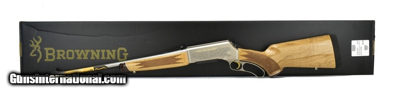 Description: Browning BLR .243 Win caliber rifle. 20” Barrel, maple stock, engraved forearm with Schnabel 4+1 capacity. New.