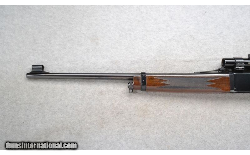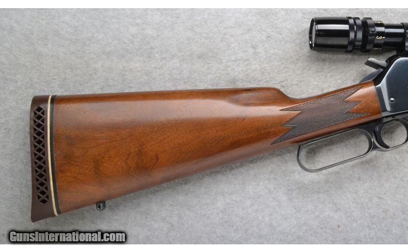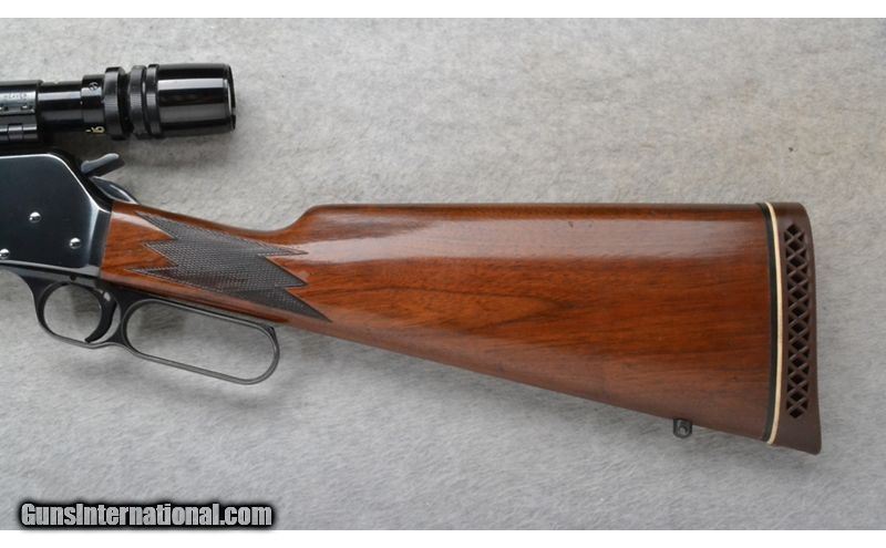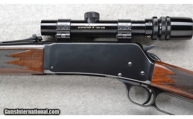 Description: This Browning Model BLR is a right hand lever action repeating rifle in .308 Win. Cal. Only. It has a 20 inch barrel. A hooded front blade sight and an adjustable notch middle sight. It is outfitted with a Bushnell Scopechief IV Scope. The butt stock is a checkered grip walnut straight grip. The forearm is a checkered grip walnut with a barrel band. Made in Belgium. .308 Winchester SOLD Chambers: Detachable Magazine. Metal Condition: Excellent. Wood Condition: Excellent. Some minor handling marks. Bore Condition: Excellent. Barrels: 20 inch. Stock Dimensions: LOP 13 3/4 inches. Fore End: Checkered grip walnut with a barrel band. Butt Pad: Browning brown rubber recoil pad. Weight: 7 lb. 10 oz. Sights: Hooded front. Adjustable notch middle. Bushnell Scopechief IV 1.5x - 4.5x Item Location: Richfield, WI |