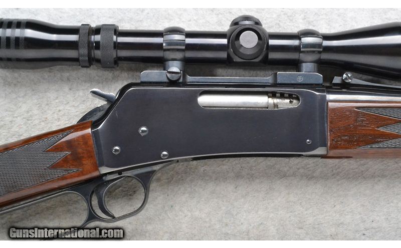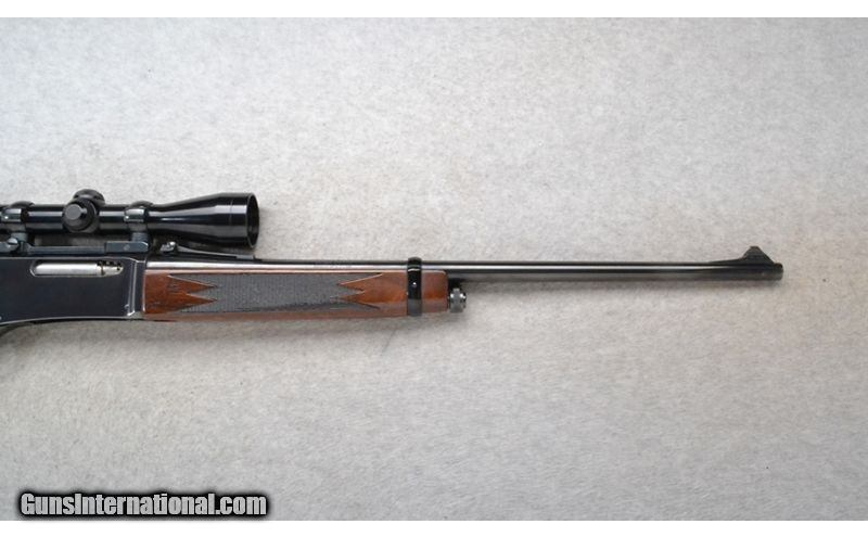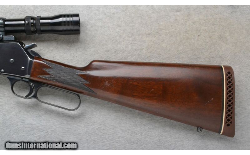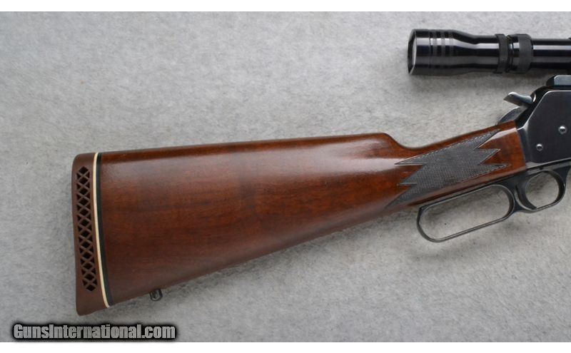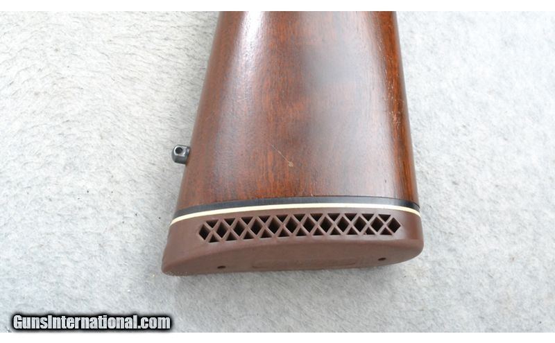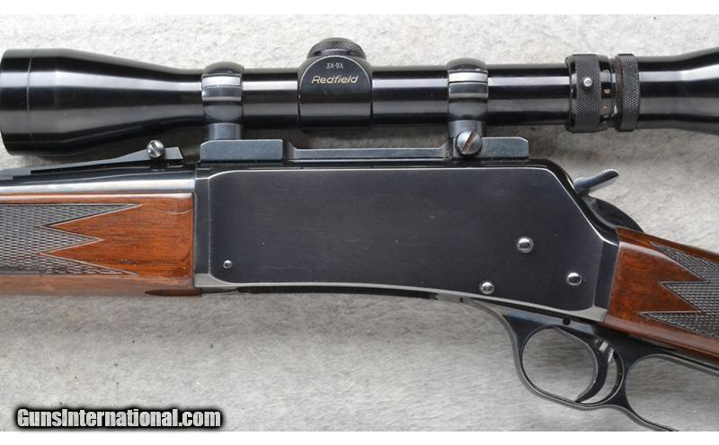 Description: This Browning Model BLR is a right hand lever action repeating rifle in .308 Win. Cal. It has a 20 inch barrel. A blade front sight and an adjustable notch middle sight. It is outfitted with a Redfield Scope. The butt stock is a checkered grip walnut straight grip. The forearm is a checkered grip walnut with a barrel band. Made in Belgium. .308 Winchester SOLD Chambers: Detachable Magazine. Metal Condition: Excellent. Wood Condition: Good. Has some handling marks and finish wear. Bore Condition: Excellent. Barrels: 20 inch barrel. Stock Dimensions: LOP 14 3/4 inches. Fore End: Checkered grip walnut with a barrel band. Butt Pad: Browning brown rubber recoil pad. Weight: 8 lb. 2 oz. Sights: Raised blade front. Adjustable notch middle. Redfield 3x-9x Scope. Item Location: Richfield, WI |