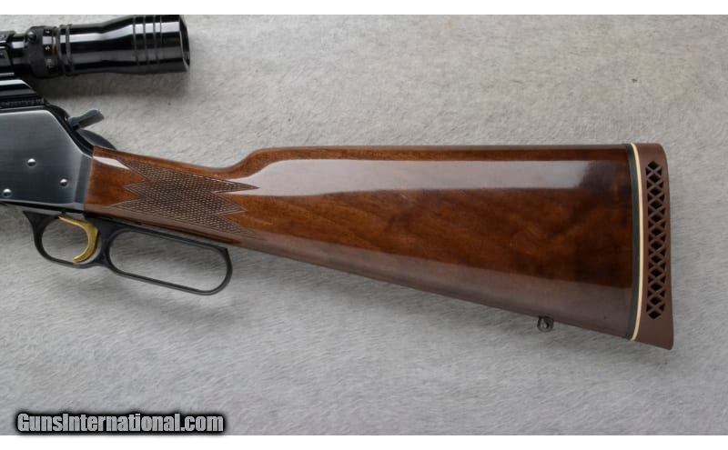 Description: This Browning Model BLR is a right hand lever action rifle in .308 Win. Cal. It has a 20 inch barrel. A hooded front blade sight and an adjustable notch middle sight. It is outfitted with a Redfield Scope on a see through mount. The butt stock is a checkered grip walnut straight grip. The forearm is a checkered grip walnut with a barrel band. .308 Winchester SOLD Chambers: Detachable magazine. Metal Condition: Excellent with a scratch on the left side of the receiver. Wood Condition: Very Good with some minor handling/use marks. Bore Condition: Excellent. Barrels: 20 inch. Stock Dimensions: LOP 13 3/4 inches. Fore End: Checkered grip walnut with a barrel band. Butt Pad: Browning brown rubber recoil pad. Weight: 7 Lb. 5 Oz. Sights: Hooded front blade. Adjustable notch middle. Redfield 2X-7X Scope on a see through mount. Item Location: Richfield, WI |