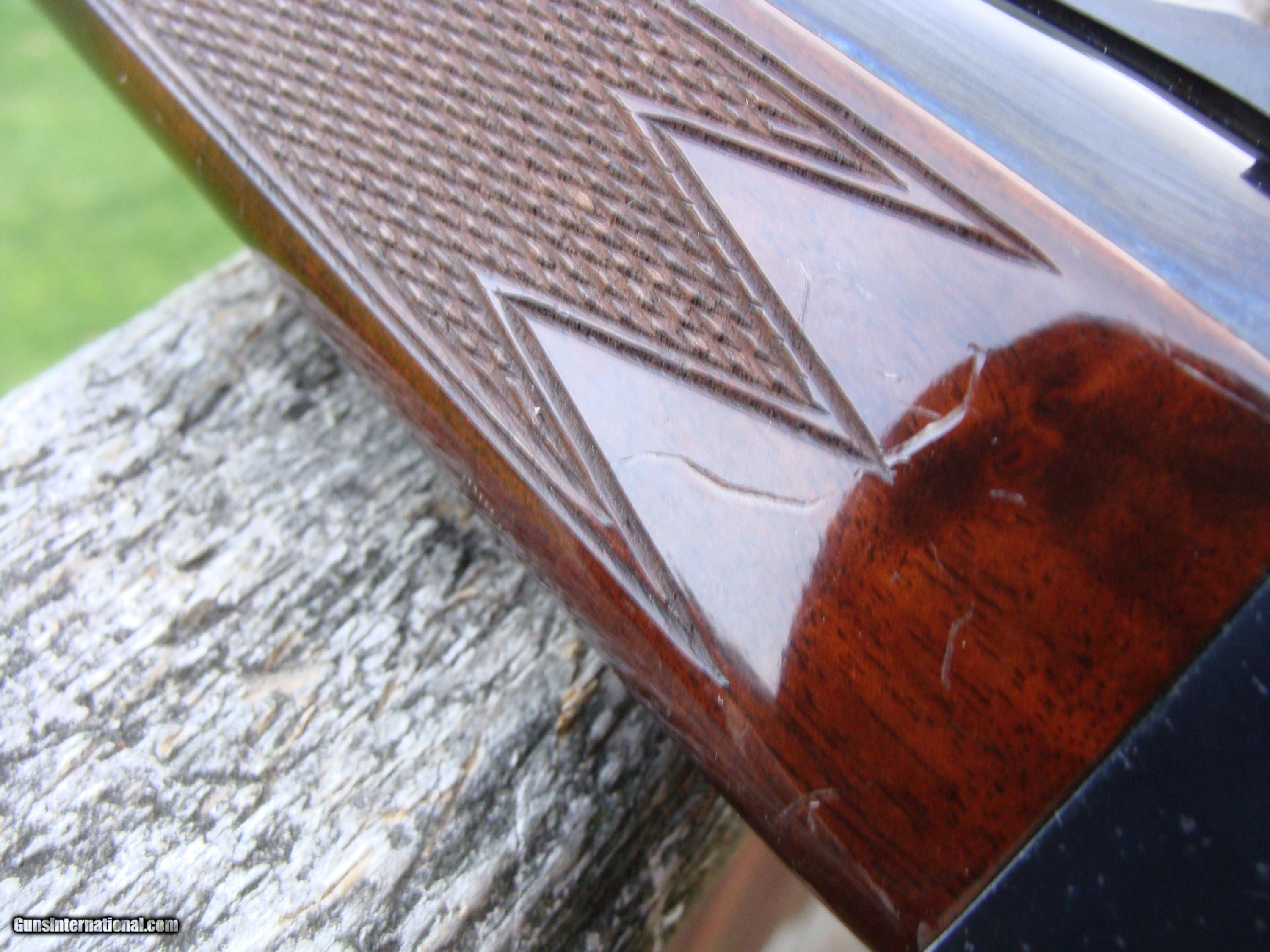 Description: UNDER DEPOSIT SUBJECT TO DELIVERY 6/30/18 Beautiful Browning BLR (lever action) rifle in powerful and sought after 358 Winchester. This would make a handy saddle or truck gun and is ideal for Bear, Moose or Elk in the timber. Overall condition is very good to excellent: except for a little crud on the underside of the lever , all other blued surfaces are approx 95% and the handsome nicely figured dark Walnut stuck set has some handling marks (none meanaingful) but we will rate the condition of the stock set at 88% Barrel length is 20 " and overall lenght is under 40" !!!! This is the newer version of this classic lightweight fast shooting carbine (distingquised by the clip that protrudes slightly vs the older ones where the underside of the clip is different. This gun is especially handy and unique as a lever gun with a clip magazine easily removed for safe hadling whene getting in and out of hunting vehicles, boats or in camp. This gun appears to have been lightly used and has no issues. It does not appear that a scope had ever been mounted on it either but it is factory drilled and tapped to accept a scope. We are a full service FFL with over 1500 sales on various sites and an A plus rating on all. We specialize in unique quality mostly older sporting guns and fine handguns; call with needs we often have some pretty unusual inventory and many used scopes at fair prices. Use of a credit card adds 3% to the purchase. Most long guns ship in specialty re usable shipping cartons and the average price to ship is $ 45.00 (more to Ak, HI or PR) With some guns we offer a layaway ; call to inquire. Typically it is 30% down with the bal due in 30 days. We are always interested in fair minded trades. We may have another (earlier model) also in 358 coming in shortly. Under Deposit Subject to Funds 6/30/2018 subject to delivery SOLD Manufacturer: Browning Model: BLR Caliber Info: 358 |