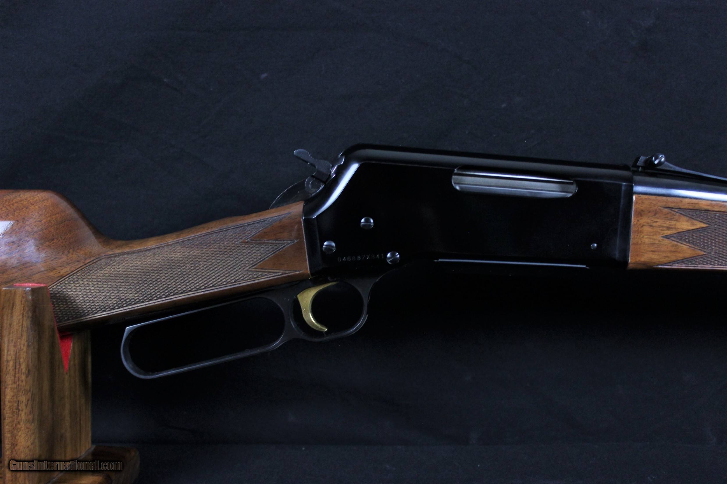 Description: The Browning BLR Lightweight Lever-Action Rifle delivers rapid fire with hard-hitting big game cartridges. BLR rifles utilize a geared lever and bolt design that accommodates modern high-pressure rounds. The trigger moves with the lever when it is cycled, preventing the trigger finger from being pinched when the lever is closed. A detachable box magazine allows the use of pointed-tipped bullets, greatly increasing range, compared to traditional lever-actions with tubular magazines. The rifle comes with an adjustable, low-profile square notch rear sight, and a gold bead front sight blade fitted on a raised ramp-style base. The lightweight alloy receiver features side ejection, and is drilled and tapped for scope mounts. A unique hammer design has a half-cock safety that's quiet to operate. The Browning BLR Lightweight Lever-Action Rifle comes with deeply polished bluing, and a gloss-finished, checkered walnut stock. A well-formed recoil pad helps keep the butt on your shoulder for quick follow-up shots. Dimensions are as follows BBL. 20" Wt. 6lbs. 8oz. DIM. 14" L.O.P. SOLD |