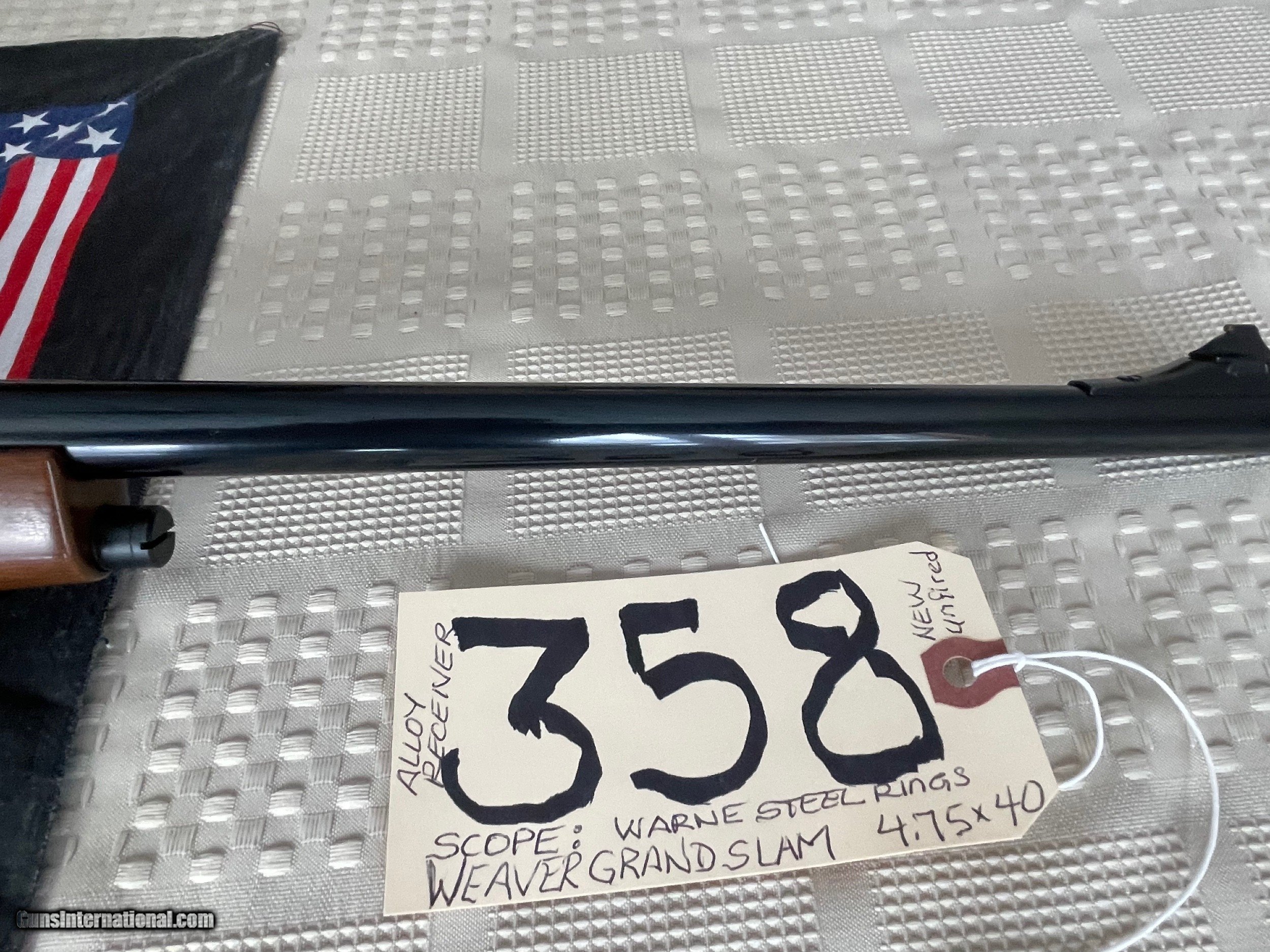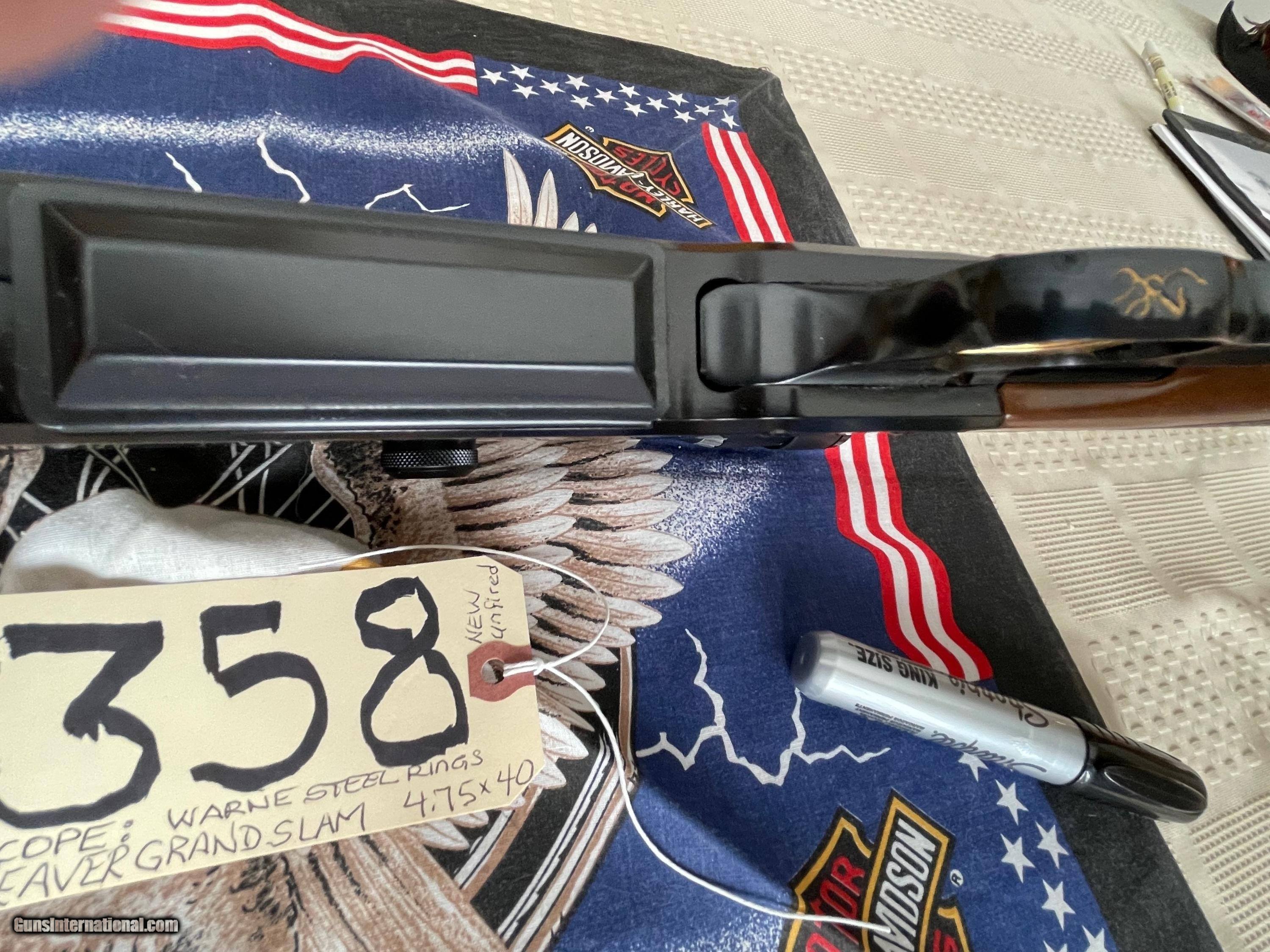 Description: Scope-Weaver Grand Slam 4.75x40 Never Fired! Excellent Condition! The Browning BLR is a lever-action rifle manufactured for Browning Arms Company by Miroku Firearms in Japan. It comes in many different variations and is chambered in numerous calibers from small and fast (.22-250 Remington and .243 Winchester) to the large Magnum rounds (7mm Remington Magnum, .300 Winchester Magnum, and .325 WSM).[2] The BLR uses a detachable box magazine. Because of this, the BLR can be chambered for rounds with pointed tip Spitzer bullets that could be a safety issue for the tubular magazine more commonly used in lever-action rifles where a pointed bullet may through the forces of recoil strike the next round's primer and ignite that round The rack and pinion geared lever and bolt design can accommodate high-pressure modern magnum rounds. A notable feature is that the trigger moves with the lever when it is operated, which prevents the shooter's trigger finger from being pinched between the lever and the stock when the lever is closed. Production of the BLR began in the 1960s[3]. [4] The original "Model 81 BLR" revision had a steel receiver, which was changed to an aluminum alloy receiver with the introduction of the "Model 81 Lightning BLR" in 1995. Although this made the rifle lighter, many owners prefer the steel receiver version. The Model 81 also incorporates changes to the action.[5][3] The rifles are made in short-action and long-action models to accommodate a variety of calibers and is available with a straight-grip or pistol-grip stock. A takedown model for easy transportation and shipping is also available.[2] The Black Label Edition include a rugged straight grip laminated wood stock, matte black finish on the metalwork, a multitude of Picatinny scope bases and a 16-inch barrel fitted with a flash hider. No Cali sales or any where else where it is difficult, cc add 3.5% shipping is $85 per long gun, Mi. residents add 6% tax SOLD Rifle Caliber: .358 Winchester Manufacturer: Browning Model: BLR |
