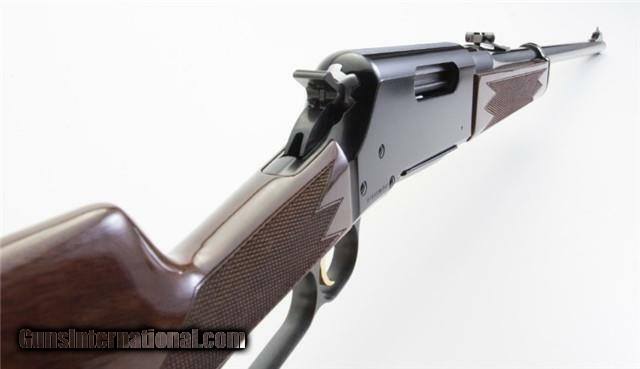 Description: Manufacturer: Browning Model: BLR Lightweight '81 SKU: 034006111 Caliber: .243 Winchester Action Length: Short Capacity: 4 Rounds Detachable Barrel Length: 20" Steel, Sporter Contour, Polished Blued Twist Rate: 1:10" Receiver: Aluminum Alloy, Polished Blued Stock: Grade I Black Walnut, Gloss Finish Length of Pull: 13.75" Overall Length: 40" Weight: 6 lbs 8 oz Sights: Iron Sights Straight grip, gloss walnut, polished blue barrel and aluminum receiver, iron sights, tapped for scope, detachable magazine, lever action rifle With a timeless beauty that’s more than skin deep. The BLR Lightweight ’81 is ready and waiting to be your next lever-action hunting rifle. The gloss finish on the walnut straight grip stock contrasts beautifully with the deeply polished blue finish on the receiver and the barrel. This is what a serious lever-action rifle should be, and what every other lever-action wishes it was. A few details about this model. You will need to look close in person, but when you do you'll notice that the stock is sculpted from fine Walnut and the cut checkering in the grip and fore-end is crisply executed for lasting good looks and a more solid grip. The straight grip BLR stock is true to the classic lines of the lever action rifle and has a traditional carbine strap at the fore-end. Nuances of select walnut. The stock has a deep, glossy finish that brings out every nuance of the wood’s warm color and grain. The well-formed recoil pad helps reduce felt recoil and flinching. SOLD |