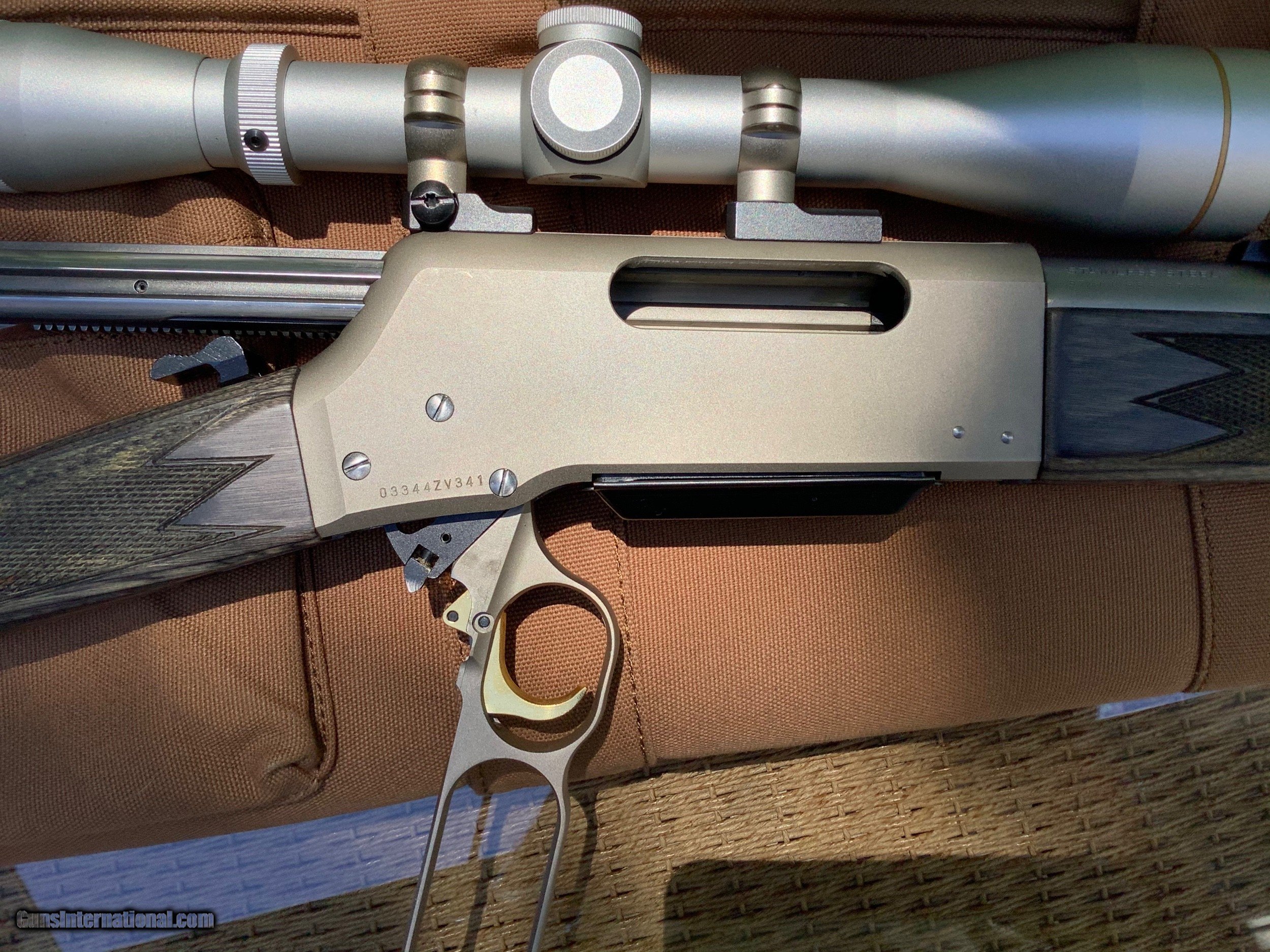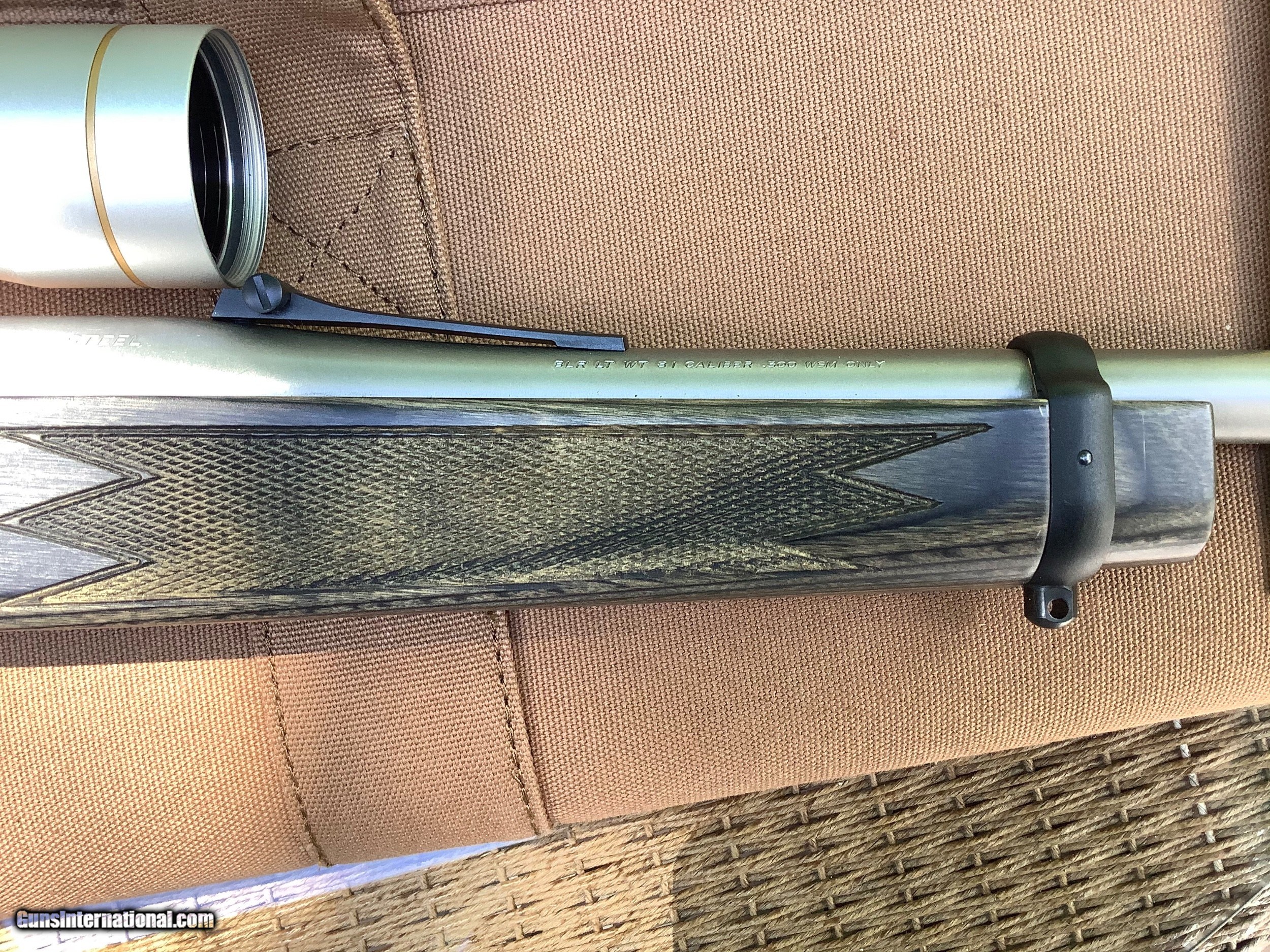 Description: Quick take down,grey laminate stock, checked straight grip and forearm, matte stainless barrel,a satin nickel receiver, detachable magazine, lever action with Leupold scope mounting bases and rings and gunsmith installed sling posts. In excellent condition, like new with less than a box of ammunition shot through it. SOLD Manufacturer: Browning Model: BLR Lightweight ‘81 Stainless Takedown Serial Number: 03344ZV341 Caliber Info: 300WSM Condition: Excellent Metal Condition: Excellent Wood Condition: Excellent Bore Condition: Excellent Action: Lever Stock: Grey Laminate Stock Dimensions: Length: 13 3/4” |