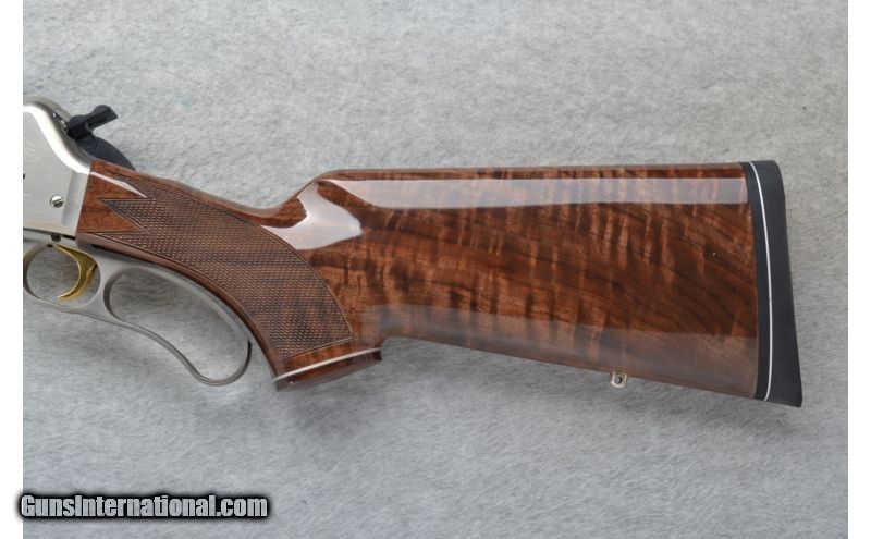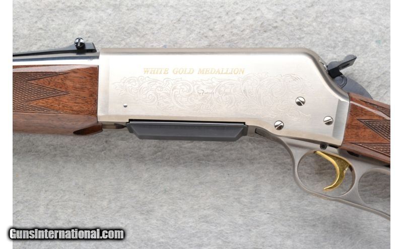 Description: This Browning Model BLR LT WT White Gold Medallion is a right hand action lever action repeating rifle in .308 Win. Cal. Only. It has a 20 inch stainless steel barrel and an engraved alloy receiver. The stock is a checkered grip walnut pistol grip with rosewood cap and forearm tip. In over all excellent condition it comes as is. No box. SOLD Manufacturer: Made in Japan/Miroku Caliber Info: .308 Win. Only Chambers: Detachable magazine. Metal Condition: Excellent. Wood Condition: Excellent with a couple very minor handling marks. Bore Condition: Excellent. Barrels: 20 inch stailess steel. Triggers: Grooved Golden. Stock: Checkered grip walnut pistol grip with a rosewood cap. Engraved alloy receiver. Stock Dimensions: LOP 13 3/4 inches. Fore End: Checkered grip walnut with a rosewood tip. Butt Pad: Browning black rubber pad. Weight: 6 lbs. 12 oz. Sights: Raised blade front. Adjustable notch middle. Drilled and tapped. Item Location: Richfield, WI |