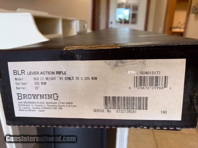 Description: I am relocating to another part of the state so parting with a few unique or rare rifles. Up for sale is a Browning BLR chambered in 325 WSM. This rifle came to me as unfired and has remained such in my possession. It has a SS and Grey Laminated Wood finishes. This is the unique take down model that breaks down with the flip of a small lever. The sale includes factory box and paperwork. For Oklahoma residences the rifle may be picked up in Ada or Durant Oklahoma with valid ID and must be willing to sign a BOS. For out of state purchase shipping and insurance is available to your FFL of choice. Please see my other listings for more unique or rare rifles. Thank you. SOLD Manufacturer: Browning Model: BLR Barrel Length: 20 Caliber Info: 325 WSM Condition: Excellent Metal Condition: Excellent Wood Condition: Excellent Bore Condition: Excellent Action: Lever Action Sights: Factory Iron Extras: Factory Box |
