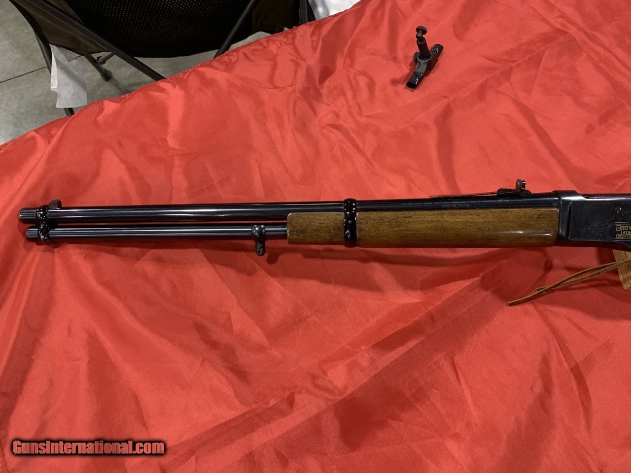 Description: This is a nice gun with gold trigger, gloss finish on the wood and in nearly mint condition. It is a 44 magnum and these Brownings are easily the best made model 1892 you can get.It has sling studs on the magazine and butt. An e3xcetional value at $999.00 SOLD |