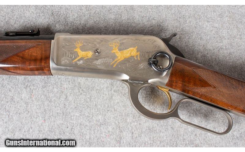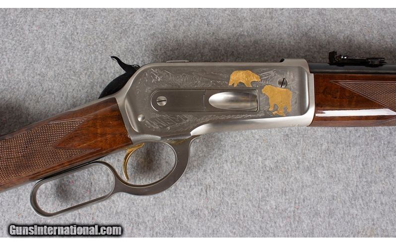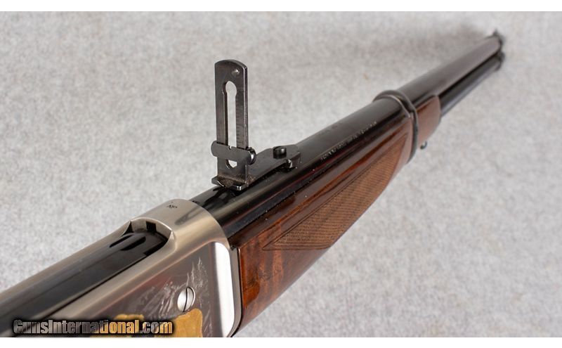 Description: This is the Browning 1886 High Grade commemorative rifle chambered in .45-70 Gov. This beautiful high grade engraved lever action features a gold bear motif on the right side of the receiver with two deer running on the left side. It has a high grade polished walnut stock. .45-70 Government SOLD Metal Condition: "Excellent, There is some slight wear on the butt plate. Wood Condition: "Very good, Shows some small chips and wear near the butt of the rifle. Bore Condition: Excellent. Barrels: 22 Stock Dimensions: LOP 13.25 Butt Pad: Steel crescent butt plate. Weight: 8 lb - Sights: Rear ladder sight with front blade. Item Location: East Hartford, CT |