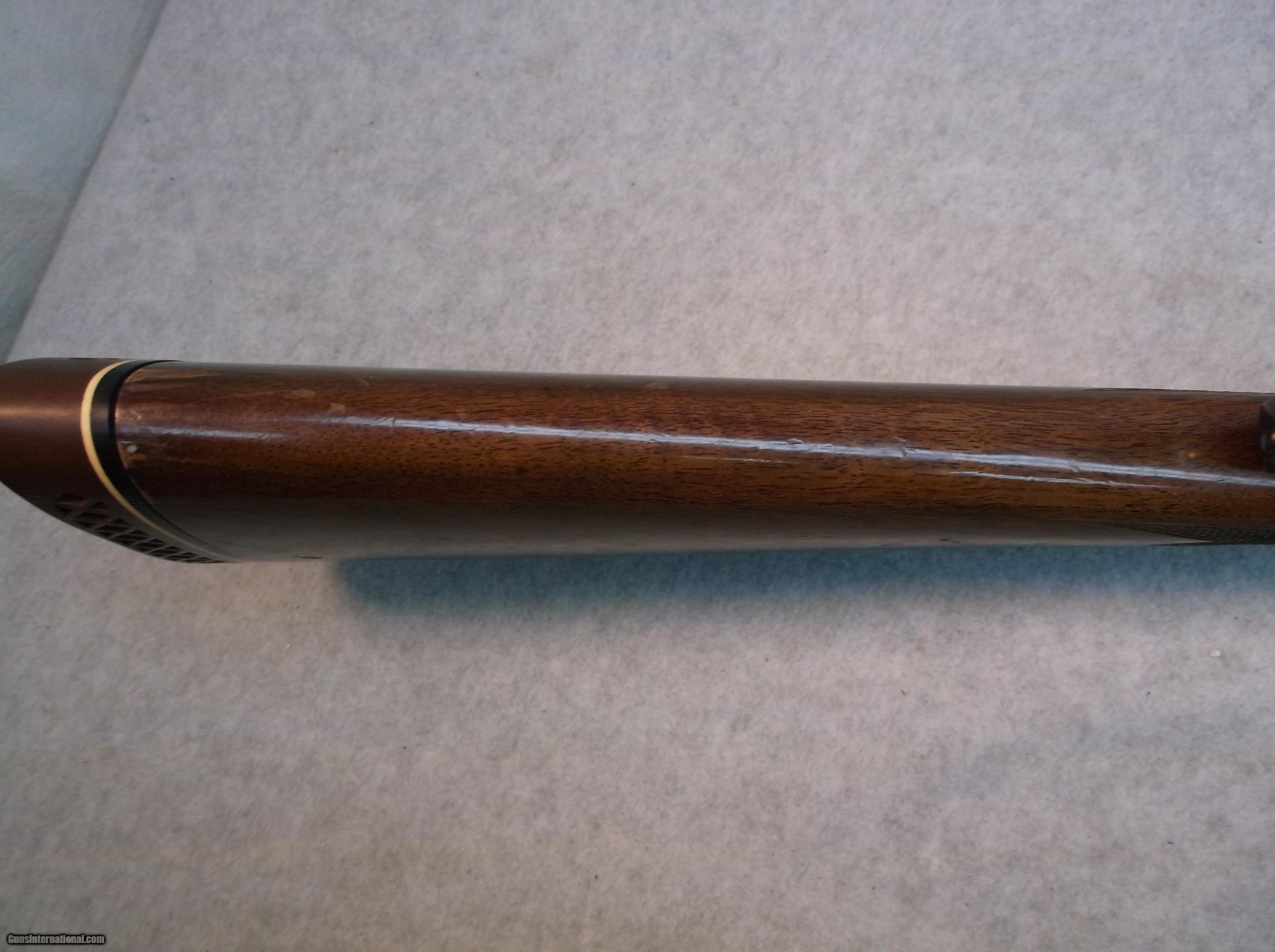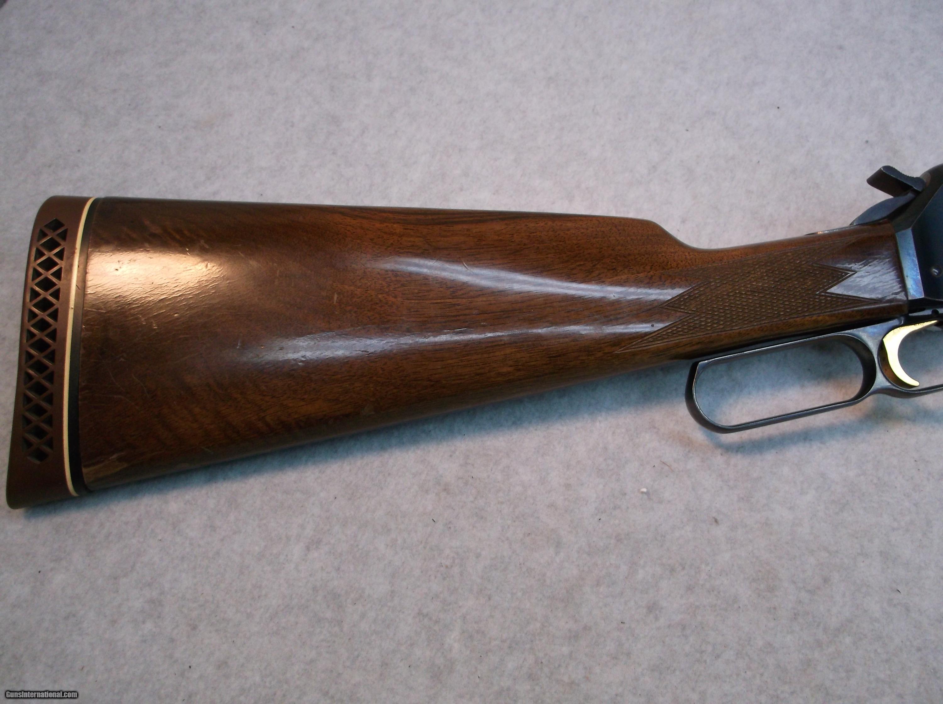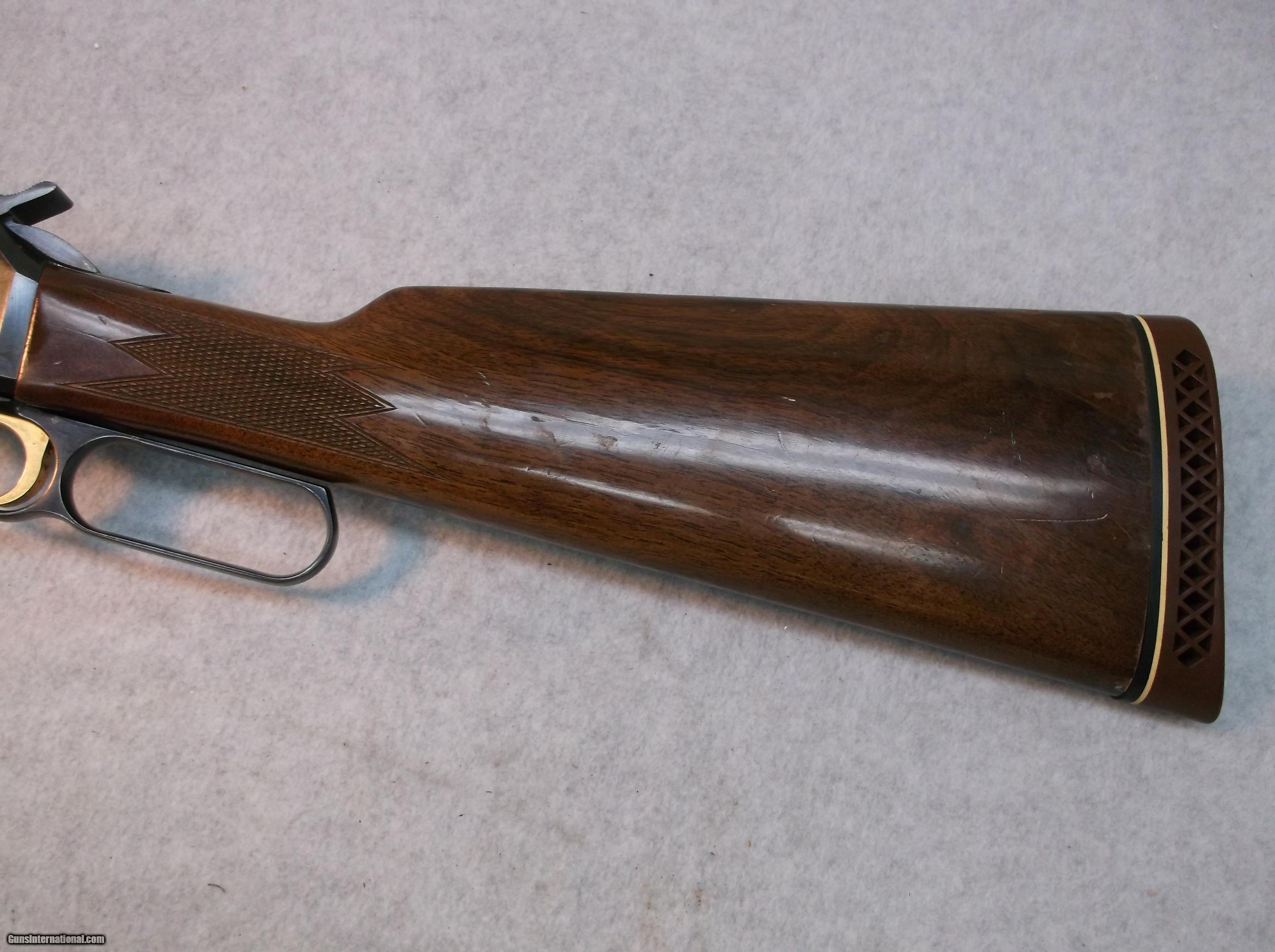 Description: Japan made Browning BLR lever action rifle chambered in 358 Winchester. Serial number decode indicates 1979 production date. There is considerable wear of the blue on the lower halves of the receiver sides and bottom. The barrel, with less wear of the blue, does have some minor freckling and a few small pitted areas. The bore is bright and shiny. The high gloss checkered furniture shows some normal wear in the form of dings and dents, scratches, and a few chips out of the clearcoat. 14" length of pull. Original Browning butt pad is still intact and mounted. Includes two magazines. Stock number B-169, please use this number when referencing this item. Willing to ship anywhere in the USA to your FFL holder, buyer pays freight. SOLD Manufacturer: Browning Japan Model: BLR Serial Number: 3XXX2RN127 Caliber Info: 358 Win LOP: 14 Manufacture Date: 1979 Item Location: Eugene, Oregon |