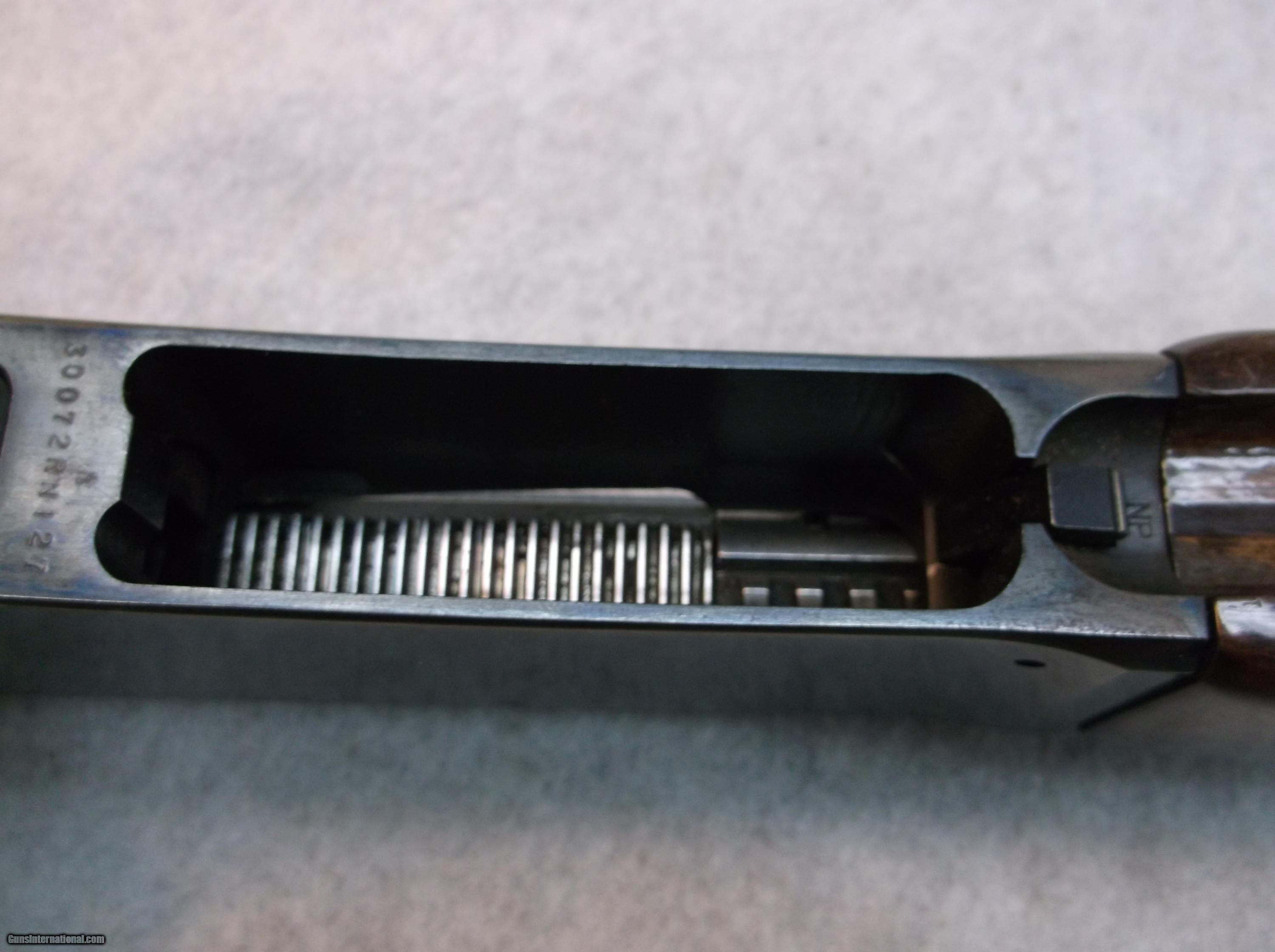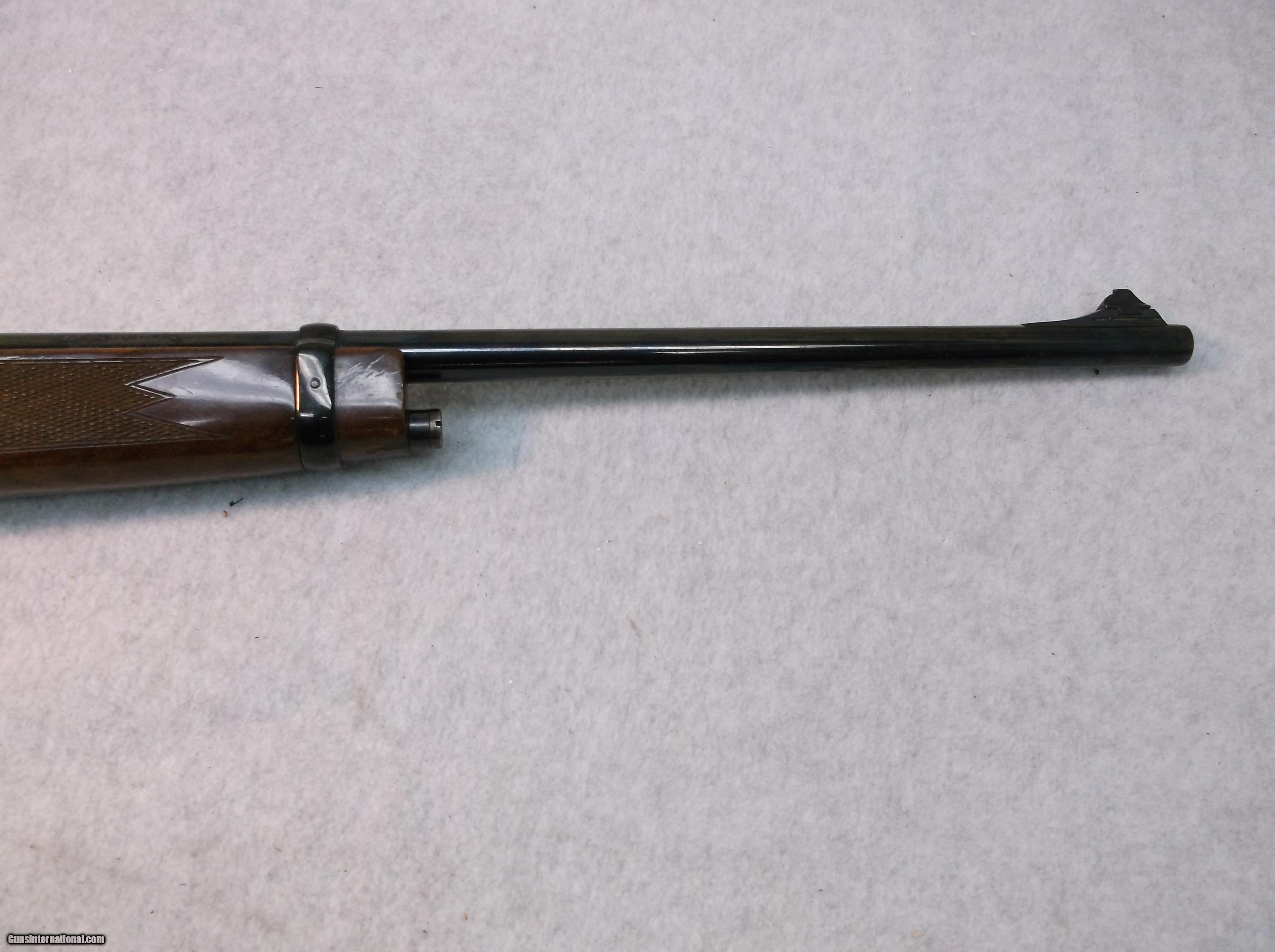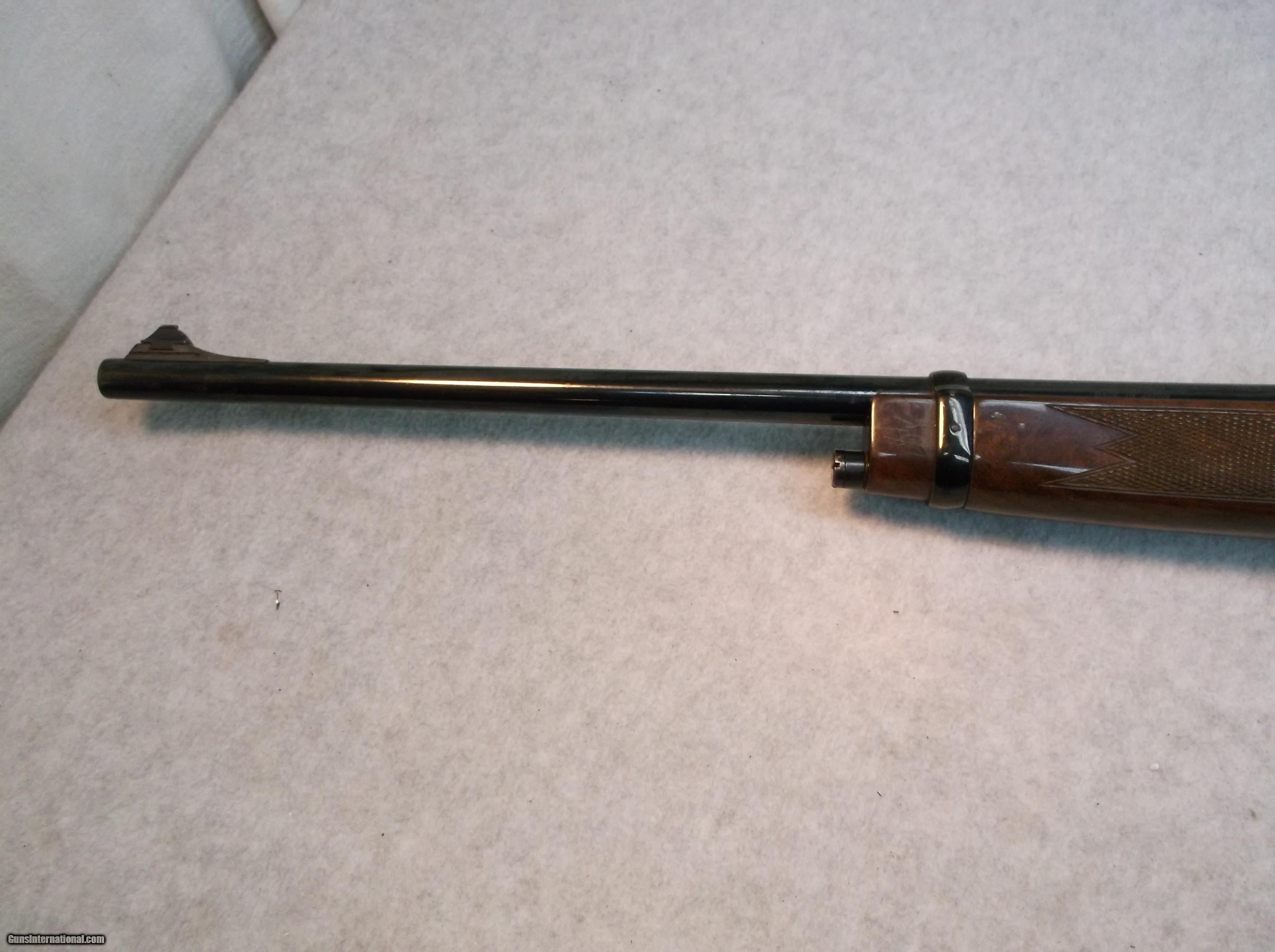 Description: Japan made Browning BLR lever action rifle chambered in 358 Winchester. Serial number decode indicates 1979 production date. There is considerable wear of the blue on the lower halves of the receiver sides and bottom. The barrel, with less wear of the blue, does have some minor freckling and a few small pitted areas. The bore is bright and shiny. The high gloss checkered furniture shows some normal wear in the form of dings and dents, scratches, and a few chips out of the clearcoat. 14" length of pull. Original Browning butt pad is still intact and mounted. Includes two magazines. Stock number B-169, please use this number when referencing this item. Willing to ship anywhere in the USA to your FFL holder, buyer pays freight. SOLD Manufacturer: Browning Japan Model: BLR Serial Number: 3XXX2RN127 Caliber Info: 358 Win LOP: 14 Manufacture Date: 1979 Item Location: Eugene, Oregon |