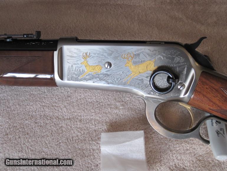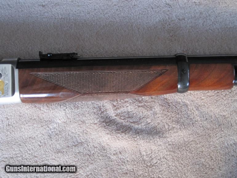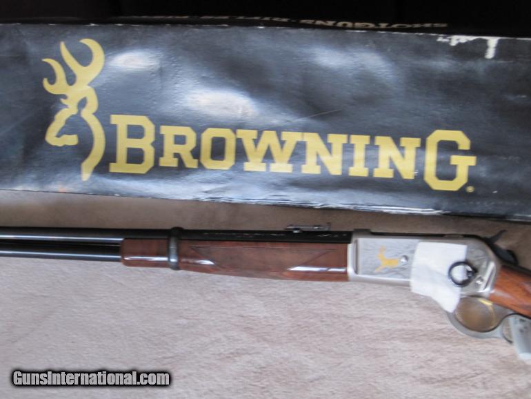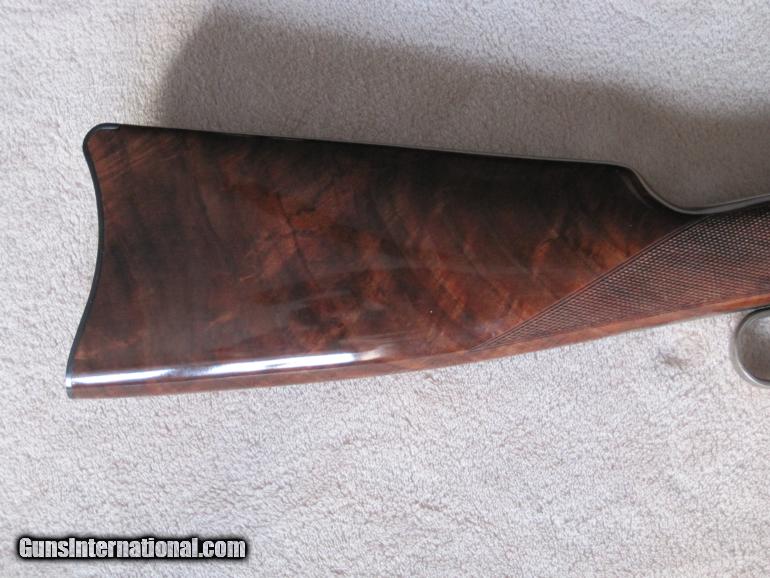 Description: SOLDBrowning Model 1886 High Grade carbine in new-in the- box condition. This is in factory-new, never fired condition with original box and manual. The finish is outstanding as is the figure of the walnut stock. This is a mint collector piece. The box is fine but does show some wear from storage. I also have the Grade 1 with the same serial number listed; #100397862. SOLD |