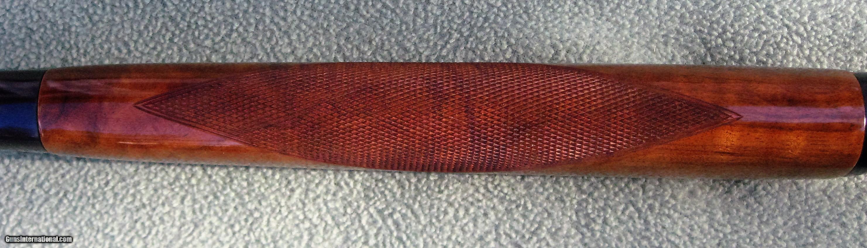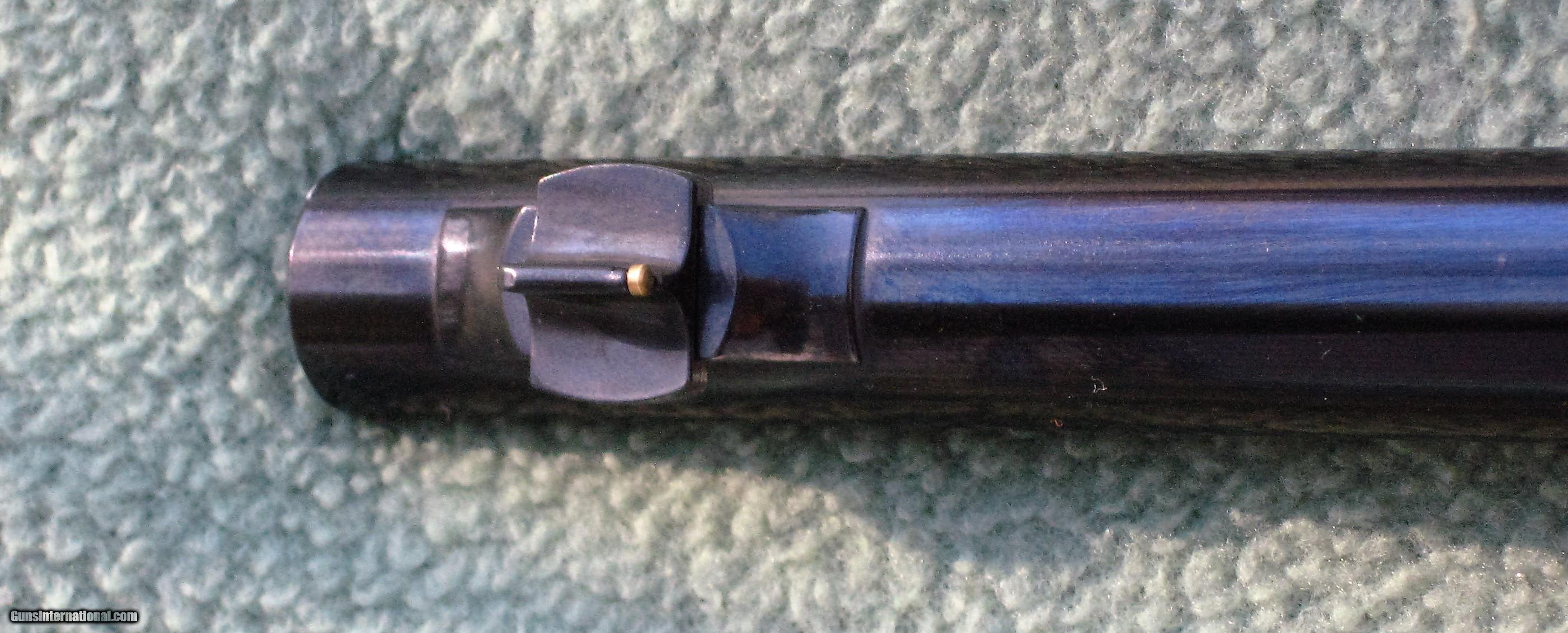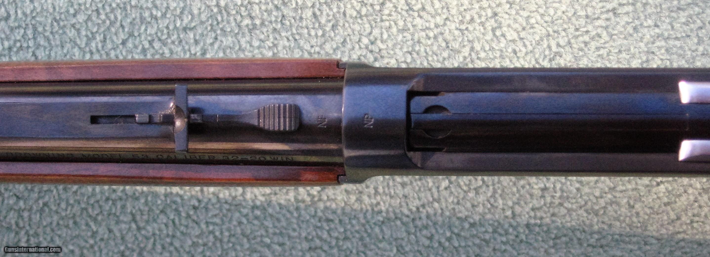 Description: (Sale Pending) Browning Model 53 Deluxe in 32-20 with a button mag. The rifle has been fired 12 times, to sight in, and, would be mint, inside and out, if it weren't for two dings (see pics) on the right side of the butt stock. In picture 6, what looks like a scuff is only light reflection. SOLD |