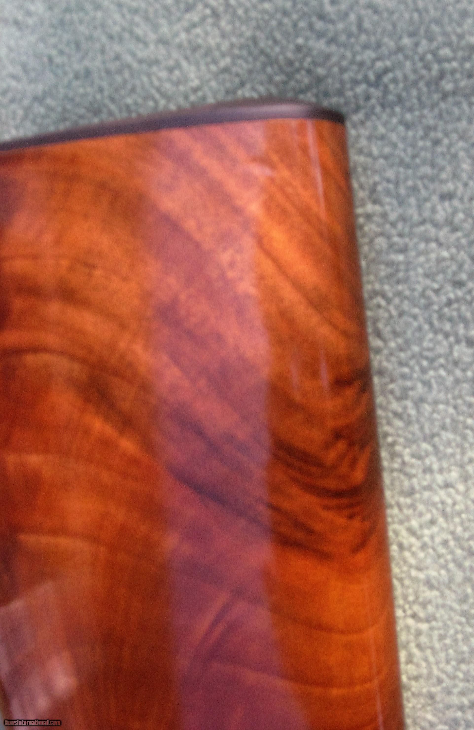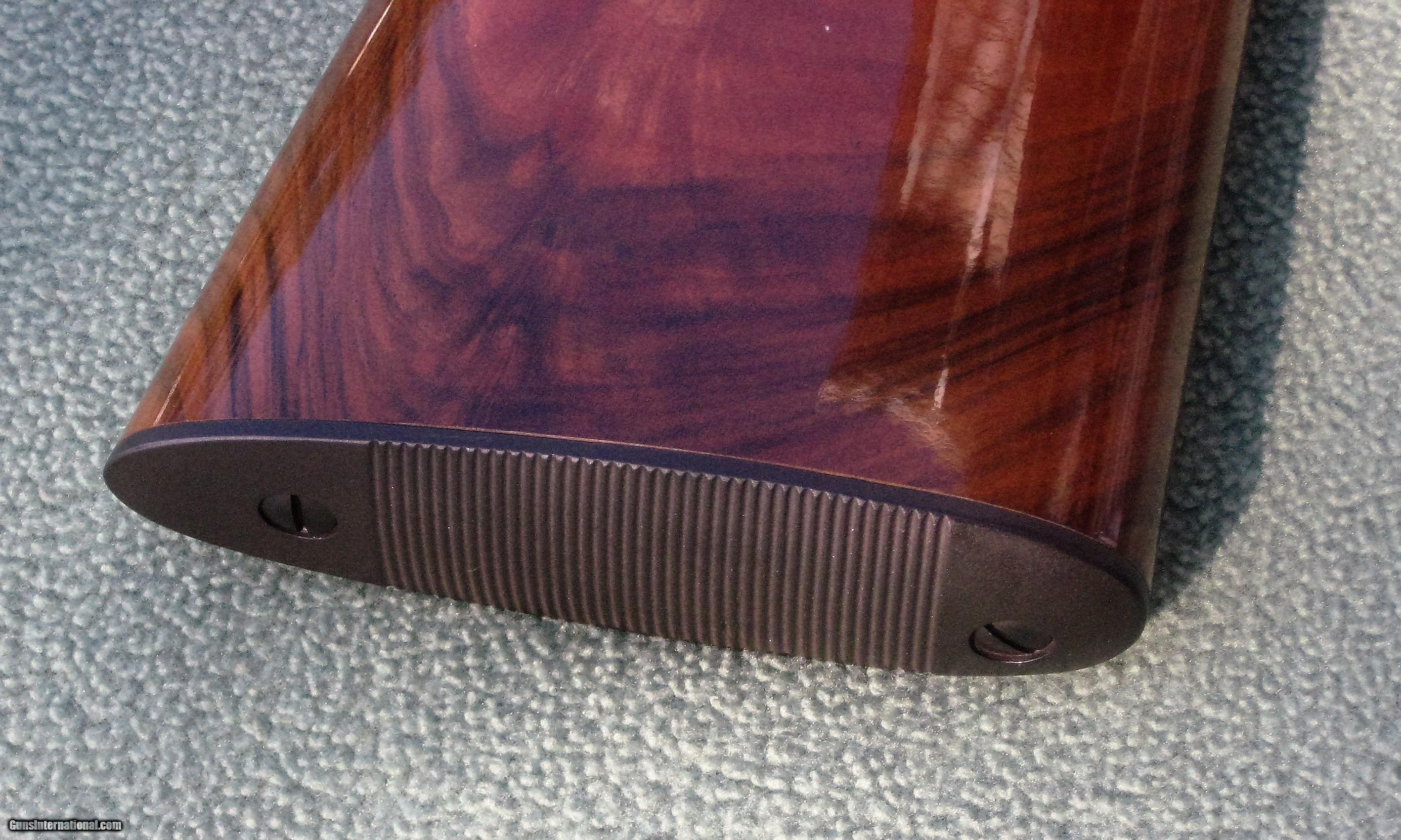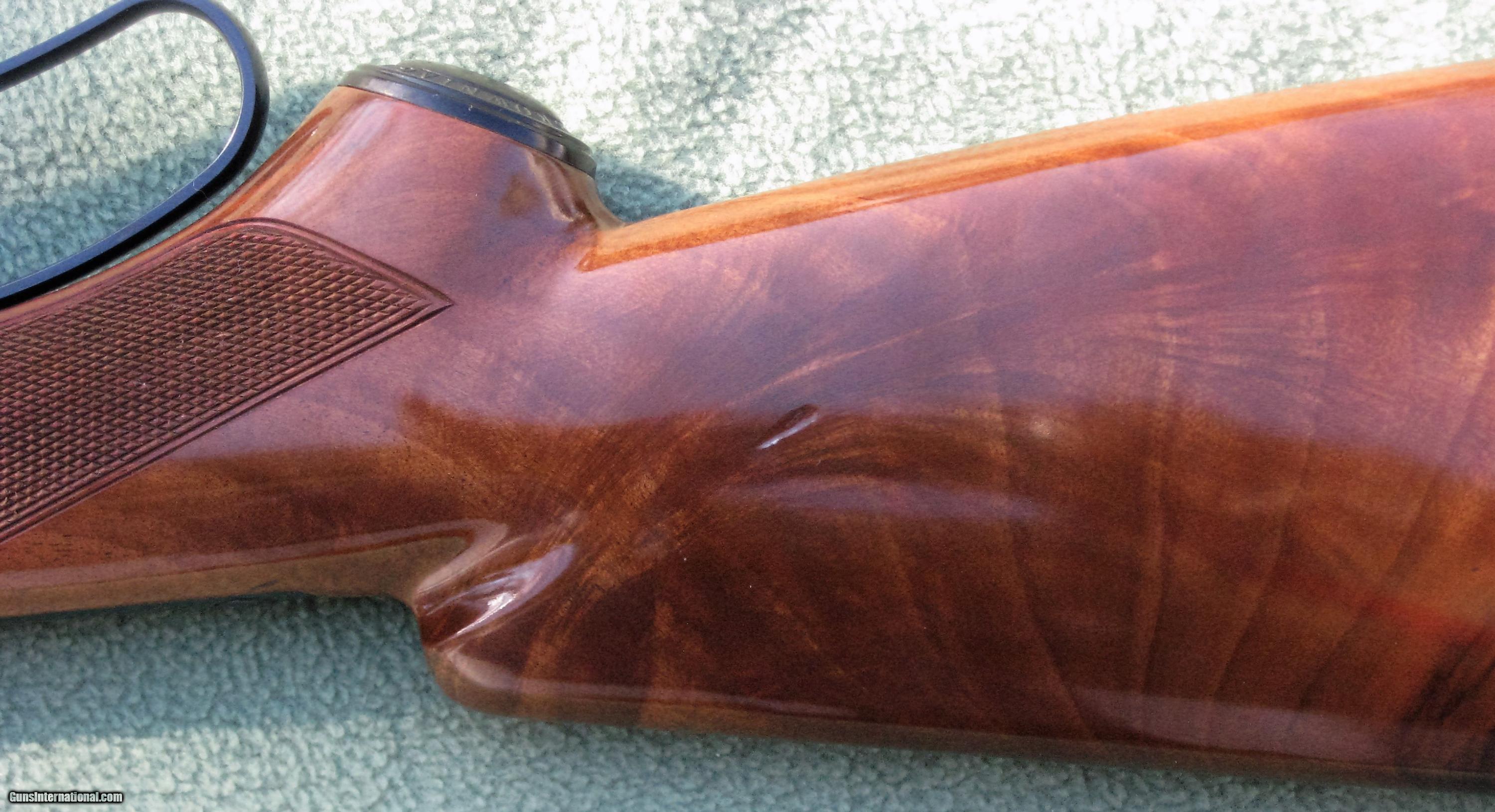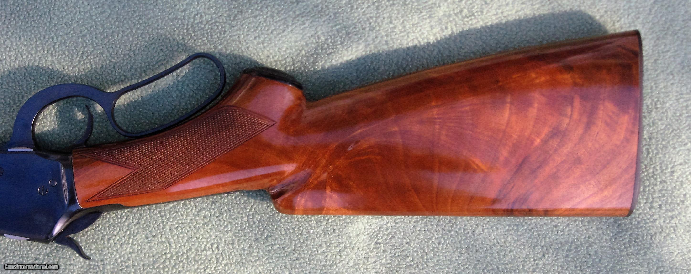 Description: (Sale Pending) Browning Model 53 Deluxe in 32-20 with a button mag. The rifle has been fired 12 times, to sight in, and, would be mint, inside and out, if it weren't for two dings (see pics) on the right side of the butt stock. In picture 6, what looks like a scuff is only light reflection. SOLD |