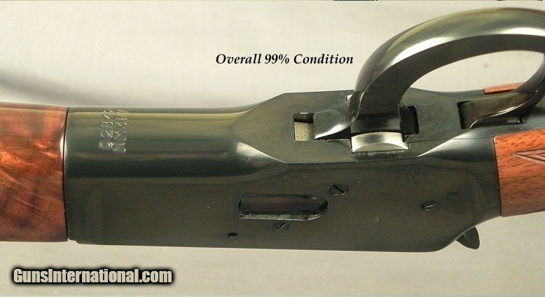 Description: #02842NM3F7, Browning Model 53 Deluxe 32-20 WCF Limited Edition, It has a 22" Round barrel, Original style Buckhorn rear sight with a sliding elevator, 13 1/4" LOP over a steel buttplate, 6 lbs. 9 oz., 1/2 length magazine that holds 7 cartridges, Nice wood with a lot of feather, Checkered pistol grip stock and checkered forend, It has high gloss blue, The barrel blue remains at 100%, The frame blue at 99%, The wood at 99%, The checkering at 100%, The bore as new. It has the factory box, but it is a bit rough. Browning had 5000 of these rifles made in 1990. SOLD Rifle Caliber: .32-20 Winchester |