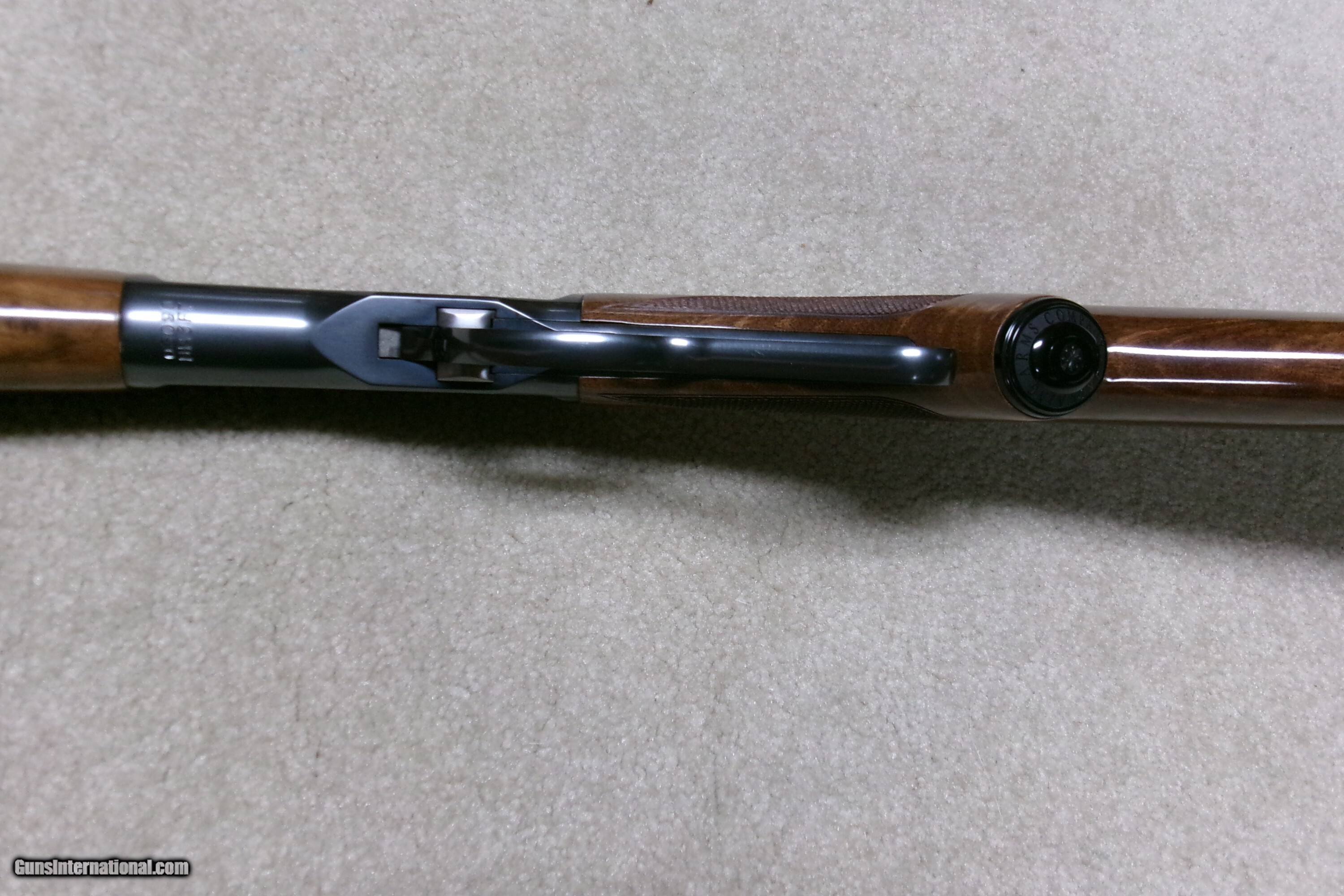 Description: BROWNING MODEL 53 DELUXE RIFLE, .32-20 CALIBER, MADE 1990. Only 5,000 of these fine rifles were made as a limited edition in 1990. They were made just like the rare pistol gripped and checkered deluxe M-53s which are extremely rare. They were also produced without any of the later annoying safeties etc. and instead are dead-ringers for the originals! This rifle features a 22” barrel, half magazine, sharply checkered forend and pistol grip with embossed grip cap. They are also serial numbered on the bottom forward section of the receiver- where the number should be- and NOT on the side of the receiver as often seen on other guns. Finished in bright blue and stocked in fancy fiddle-back striped walnut with M-53 correct serrated steel shotgun butt plate, these are truly superb rifles. This one appears about new. Rifle Caliber: .32-20 Winchester Manufacturer: BROWNING Model: Model 53 Deluxe Serial Number: 03XXX Barrel Length: 22 Condition: LIKE NEW/NO BOX Price: $1,595.00 Contact Seller |