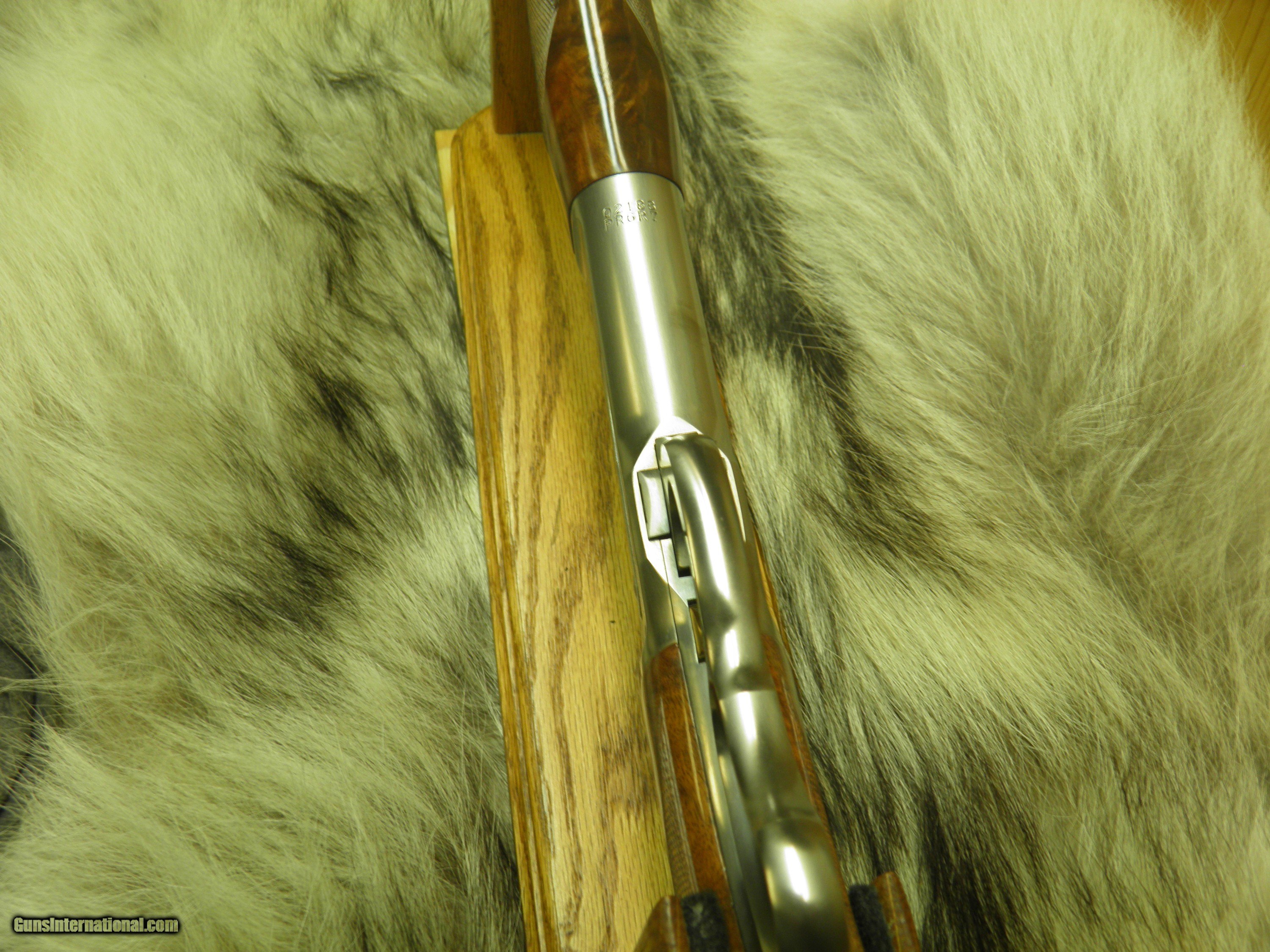 Description: Description: BROWNING LIMITED EDITION MODEL 71 HIGH GRADE RIFLE, MANF: 1987 BARREL 24", WITH OPEN SIGHTS, REAR BUCKHORN TYPE, FRONT RAMPED AND HOODED, APPROX: WEIGHT 8 LBS 2 OZ, OVERALL LENGTH 42", LENGTH OF PULL 13 1/4", MAG CAPACITY 4 ROUNDS. ACTION LEVER WITH VERTICAL LOCKS, HAMMER EXPOSED THREE POSITION, GOLD TRIGGER,THE RECEIVER AND LEVER ARE GRAYED STEEL EMBELLISHED WITH SCROLL ENGRAVING THAT SUROUND A RUNNING WHITETAIL BUCK ON THE LEFT SIDE, AND ON THE RIGHT SIDE, IS A LARGE IMPERIAL BULL ELK ALONG WITH ANOTHER BULL ELK, EACH ANIMAL IS HIGHLIGHTED IN 24 KARAT GOLD, FULL PISTOL GRIP STOCK AND CLASSIC STYLE FOREARM ARE MADE FROM BEAUTIFUL HIGH GRADE AMERICAN WALNUT, THAT HAVE A HIGH GLOSS FINISH,AND FINE-LINE HAND-CUT CHECKERING. THE BARREL AND MAGAZINE TUBE ARE HIGHLY POLISHED AND DEEPLY BLUED. "CONDITION" 100% NEW AND UNFIRED IN FACTORY BOX, WITH OWNERS MANUAL. SOLD |