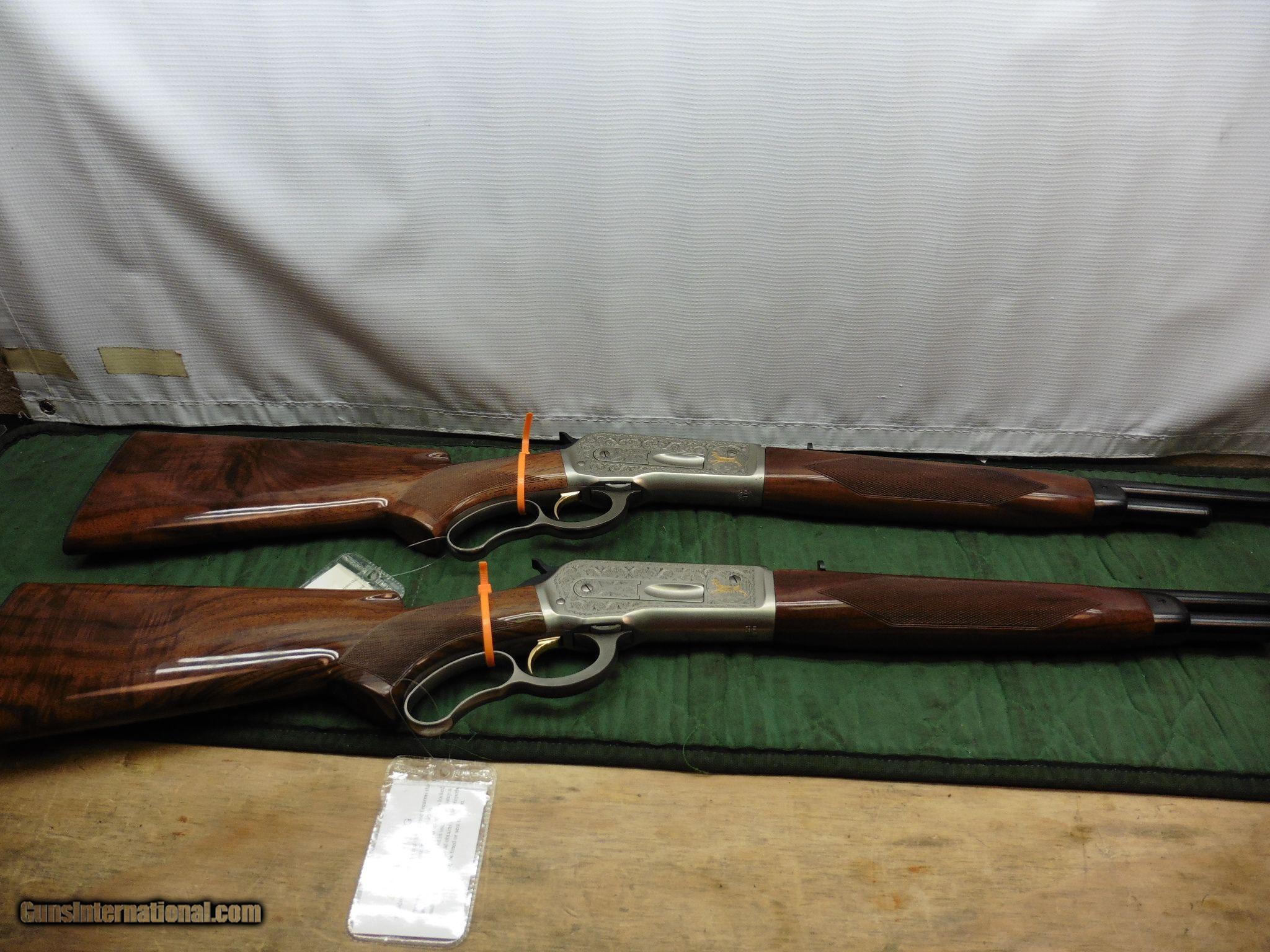 Description: Browning lever action rifles for sale. Model 71 high grade version. This is a two gun set with matching serial numbers (rifle 24" and carbine 20"). Excellent overall condition. Unfired and with original boxes. Chambered in .348 Winchester. Manufactured in Japan by Miroku (1987). Would like to move as a set. We accept all major credit cards, cashier checks and money orders. 3% fee for CC transactions. Buyer to pay shipping. Contact us with any questions. Cheers. Reduced 6/7/2019 I have a few boxes of the Winchester 200Gr. Silvertip. Special commemorative ammunition for the Browning model 71. Available for $85/box. SOLD Manufacturer: Browning Model: 71 Caliber Info: .348 Condition: unfired |