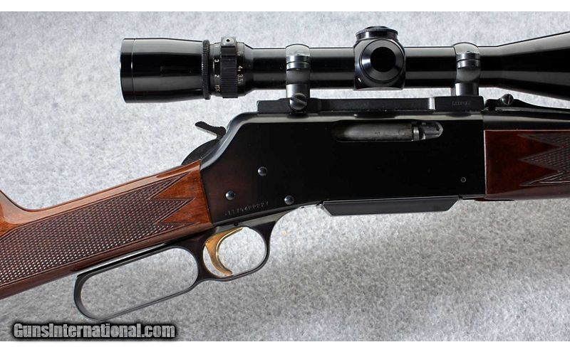 Description: The Browning® Model 81 BLR® Lever-Action Rifle delivers rapid. The '81 features a classic straight grip buttstock and lever, and a traditional carbine band on the fore end. The buttstock and fore end are beautifully finished in checkered walnut; and a well-formed recoil pad keeps the butt on your shoulder for quick follow-up shots. BLR rifles utilize a geared lever and bolt design that accommodates modern high-pressure rounds. The trigger moves with the lever when it is cycled, preventing the trigger finger from being pinched when the lever is closed. A detachable box magazine allows the use of pointed-tipped bullets, greatly increasing range, compared to traditional lever-actions with tubular magazines. The Browning BLR Lightweight '81 Lever-Action Rifle utilizes a unique hammer design with a half-cock safety that's quiet to operate in the presence of game. Manufactured 1988. .22-250 Remington SOLD Wood Condition: "Good, with dents and scratches Bore Condition: Very good Barrels: 20 inch Stock Dimensions: 13 3/4 inch LOP Fore End: Checkered walnut Butt Pad: Browning rubber pad Weight: 8 Lbs. 4 Oz. Sights: "Leupold Vari-X III 3.5-10 scope, adjustable rear sight and bead front Item Location: Lehi, UT |