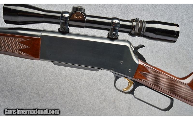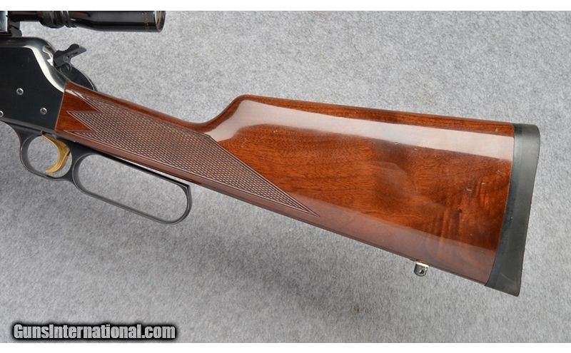 Description: Browning Lever Action Rifle shows a scattered handling marks. Very Good overall. .30-06 Springfield SOLD Metal Condition: Blued Finish Wood Condition: "Straight grip, checkered walnut Bore Condition: "Bright, Sharp Barrels: 22 Inch Stock Dimensions: 13 3/4" LOP Fore End: Checkered Walnut Butt Pad: Rubber Recoil Pad Weight: 9 lbs 8 oz Sights: "Factory rear sight removed, Burris 3-9X Fullfield Scope Item Location: Buda, TX |