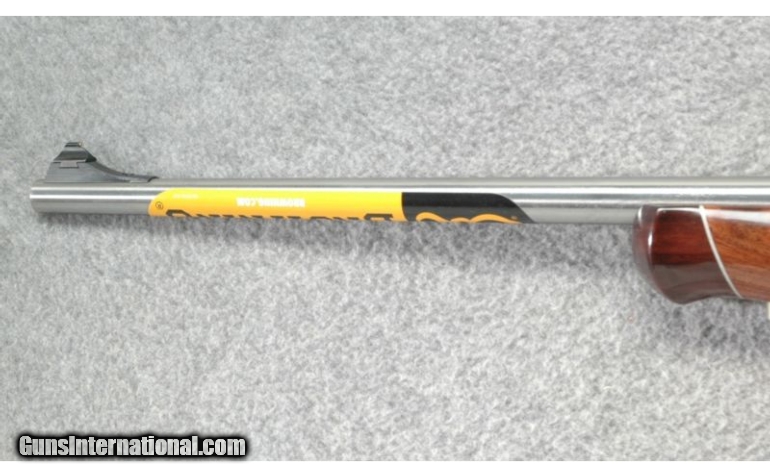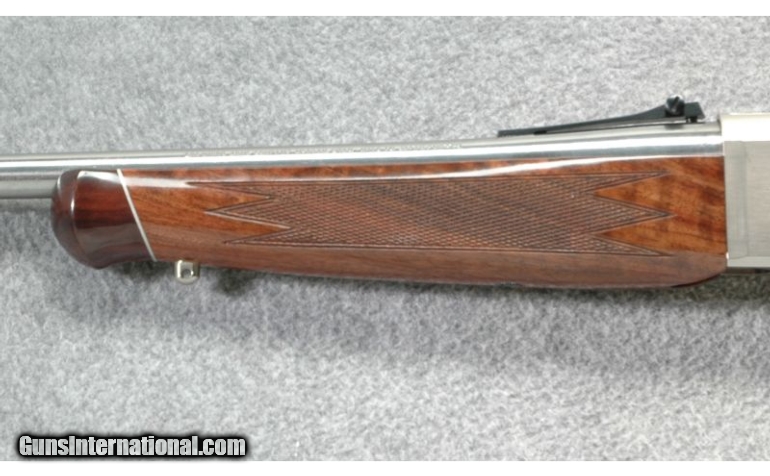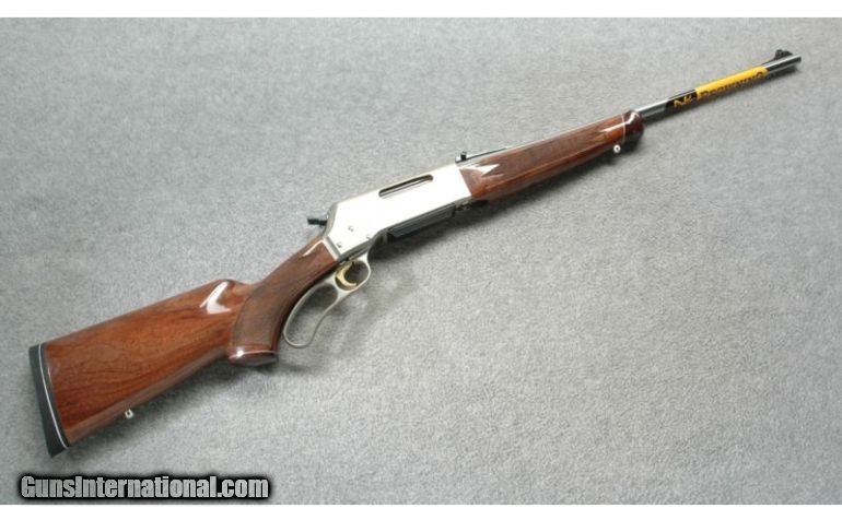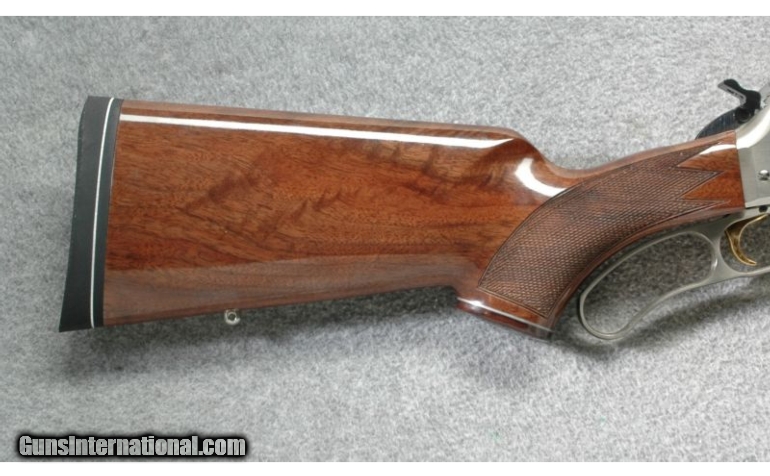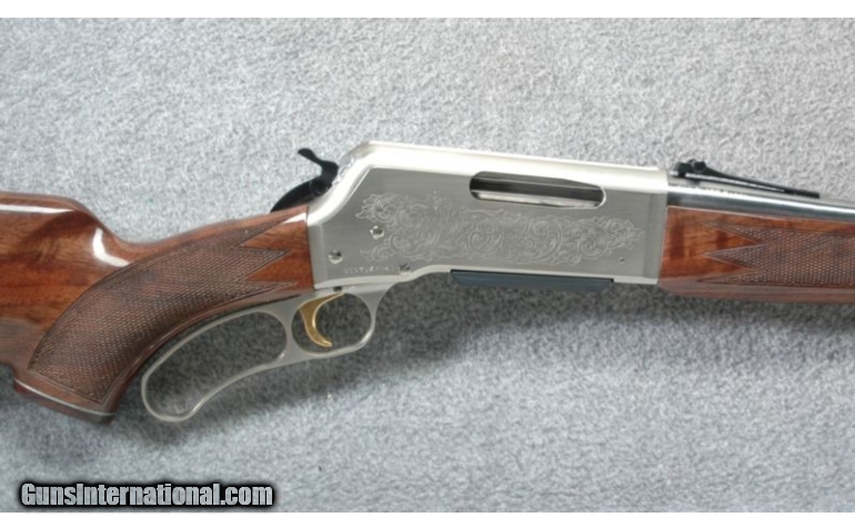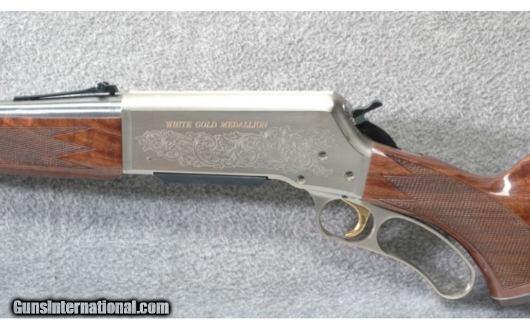 Description: This is a new Browning BLR White Gold Medallion in .308 Winchester with a 20 inch barrel. Browning's famed BLR Lever-Action Rifle has been given the prestigious White Gold Medallion treatment, resulting in a rifle that looks just as good as it shoots. The grade-IV/V walnut stock and Schnabel forend sport an eye-catching gloss finish, and are topped off with rosewood caps and checkering on the forend and grip. An aircraft-grade-aluminum side-eject receiver comes drilled and tapped for scope mounts, and its nickel finish and high-relief engraving complement the high-grade stock and forend. The polished, stainless steel barrel features adjustable sights and a crowned muzzle to protect the rifling. A classic lever action revolves around a smooth rack-and-pinion system and a rotating-head, multiple-lug breech bolt. A detachable magazine adds a modern touch to this timeless rifle, allowing it to fire round-nose ammunition for increased accuracy. A crisp 4.5-lb. trigger, smooth lever and deluxe recoil pad make the BLR a dream to shoot. Hammer positions include fully cocked, half-cocked, folded and fired for easy verification. Pre-installed swivel studs accept most rifle slings. SOLD Manufacturer: 2014 Caliber Info: .308 Winchester Metal Condition: New Wood Condition: New Bore Condition: New Barrels: 20" 1-12 twist. Triggers: Gold plated alloy. Stock: Grade IV/V Black Walnut with a gloss finish, a checkered pistol grip with a Rosewood pistol grip cap with silver spacer. Stock Dimensions: 13 3/4" LOP Fore End: Grade IV/V Black Walnut with a gloss finish a checkered Schnabel forearm with a Rosewood fore-end cap with silver spacer. Butt Pad: Factory Browning recoil pad. Weight: 6 lbs 8 oz Sights: Beaded brass blade front with adjustable rear, also tapped for scope. Extras: New in box. Item Location: Glendale, AZ |