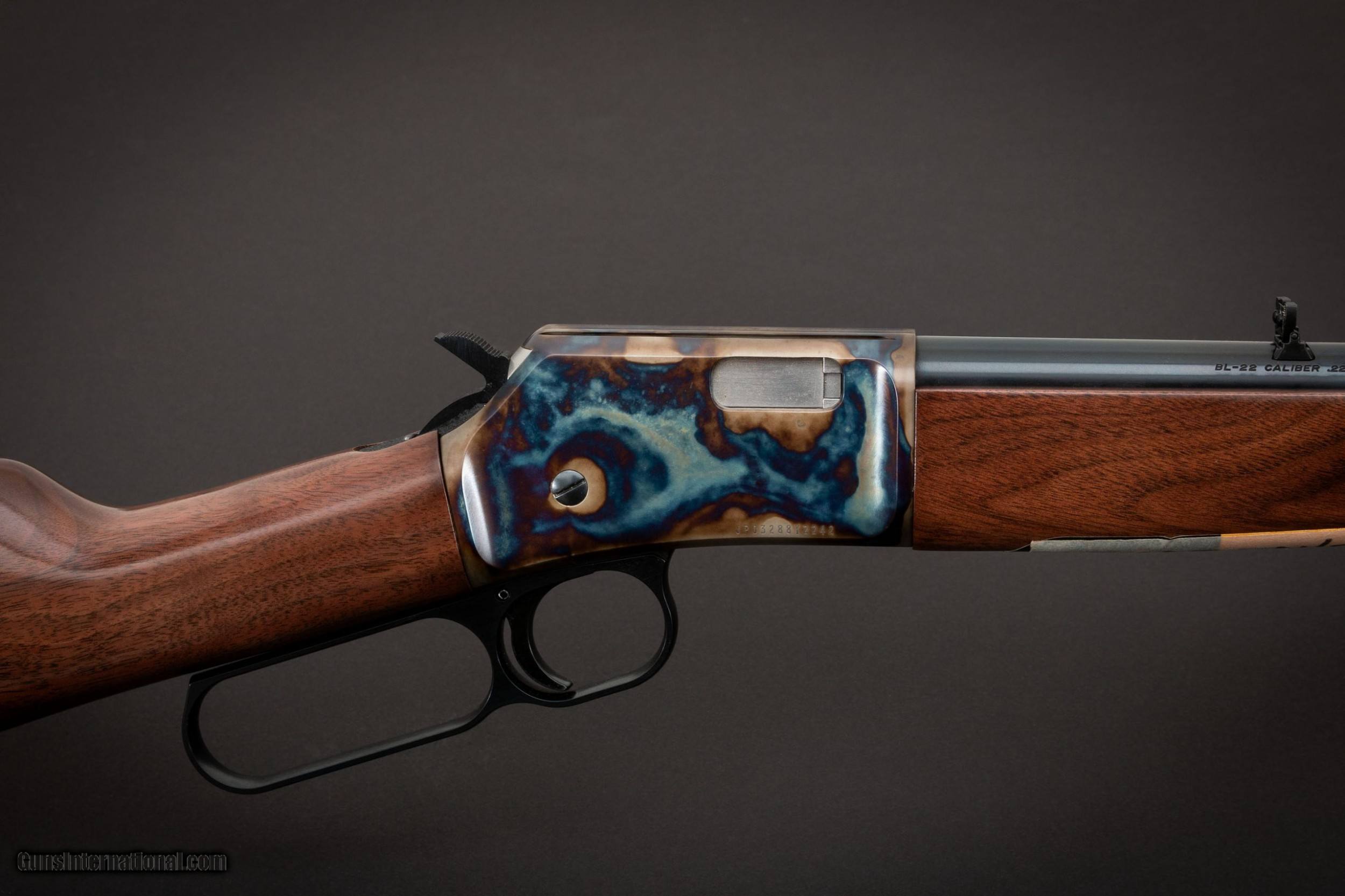 Description: As our friends at Browning remind us: their BL-22 is the 22 lever action that the big boys aspire to. Built on Browning’s Grade I platform, we color case harden the receiver with our signature bone charcoal methods, imparting the look of an instant classic. The BL-22’s factory features include a short, 33-degree lever throw and an easy-to-load tubular magazine that accommodates any combination of .22 short, long and long rifle rounds. The Turnbull touches, along with Browning’s host of smart features make this the perfect varmint hunter or plinker for any experience level. Contact us for more information and additional photographs. SOLD Handgun Caliber: .22 Short, .22 Long, .22 Long Rifle Manufacturer: Browning Model: BL-22 Grade I Serial Number: JP03288YZ242 Barrel Length: 20 Condition: New Action: Lever Stock: Black Walnut Stock Dimensions: 7/8" x 1-1/2" x 13-1/2 Butt Pad: Black Plastic Finish: Turnbull Bone Charcoal Case Hardening Weight: 5lbs. 0oz. Item Location: NY |