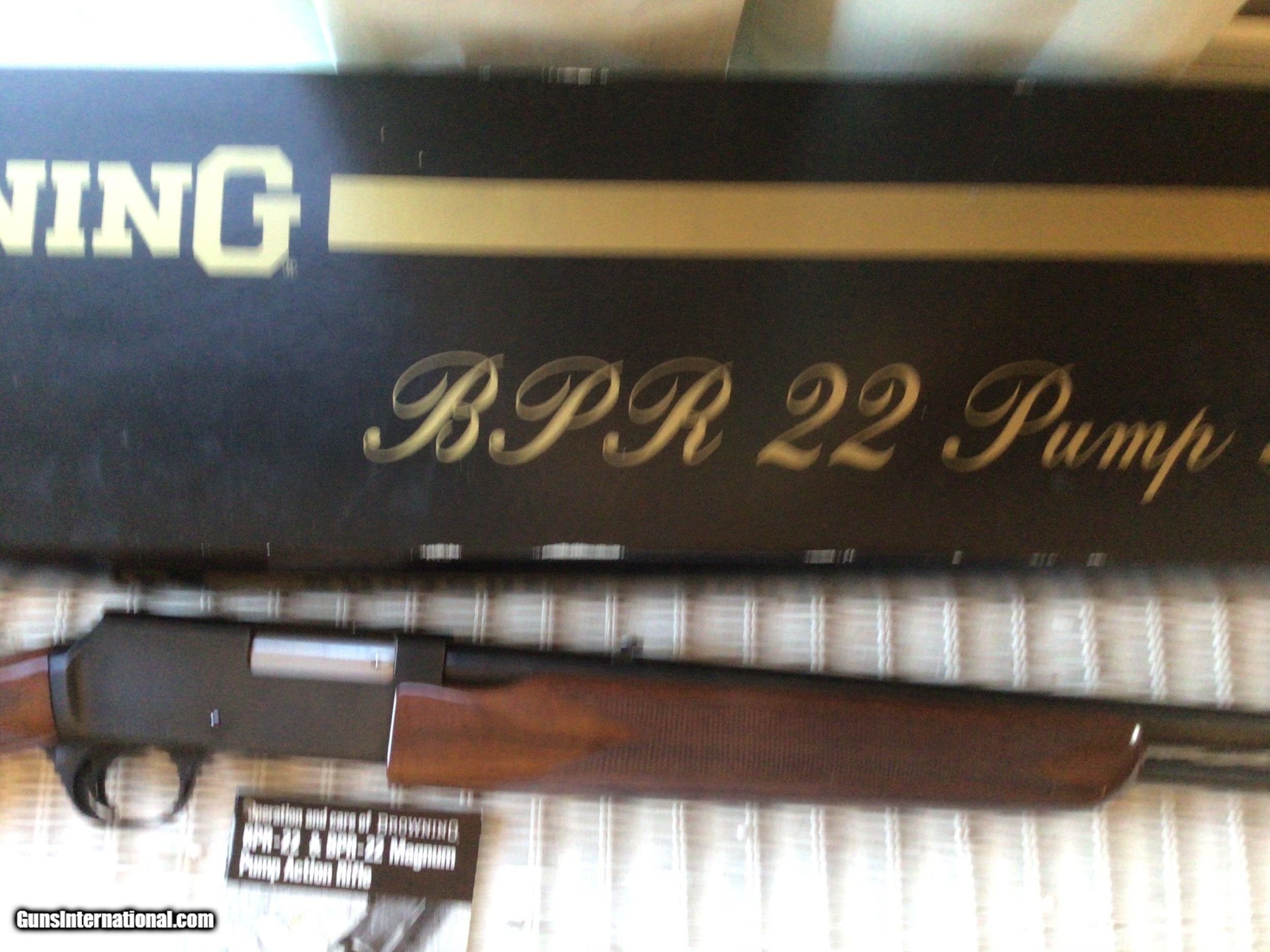 BROWNING BPR, 22 MAGNUM PUMP, NEW UNFIRED IN THE BOX, 100% COND. WITH OWNERS MANUAL