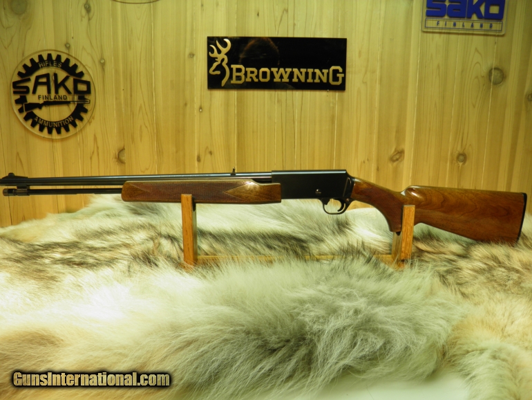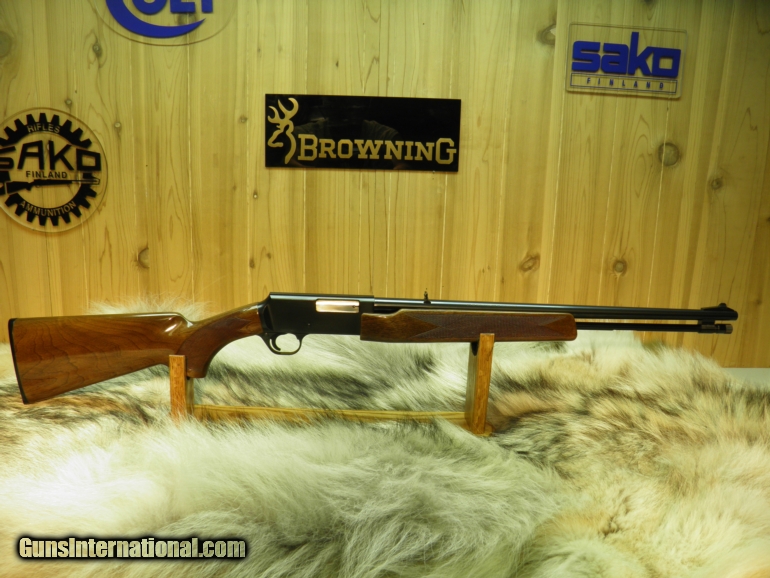 Description: BROWNING BPR- GRADE I CAL: 22 MAGNUM MANF: 1977- 1982, 20 1/4" BARREL WITH SIGHTS, FRONT- RAMPED WITH GOLD BEAD, REAR- FOLDING ADJUSTABLE, OVERALL LENGTH 38", APPROX: WEIGHT 6 LBS 4 OZ, LENGTH OF PULL 13 3/4", TUBE MAGAZINE CAPACITY 11 ROUNDS, RECEIVER GROOVED FOR SCOPE RINGS, STOCK FRENCH WALNUT WITH PISTOL GRIP, FOREARM, HAS CUT-CHECKERING, WOOD FINISHED IN HIGH GLOSS, THE IS A NICE SHORT-STROKE PUMP ACTION RIFLE IN THE SMALL GAME STOPPING 22 MAGNUM WHICH HOLDS 11 ROUNDS. "CONDITION" 98%+ BORE IS BRIGHT AND SHINNEY WITH SHARP PRONOUNCED RIFLING, LOW ROUND COUNT, GUN HAS BEEN WELL MAINTAINED! SOLD |