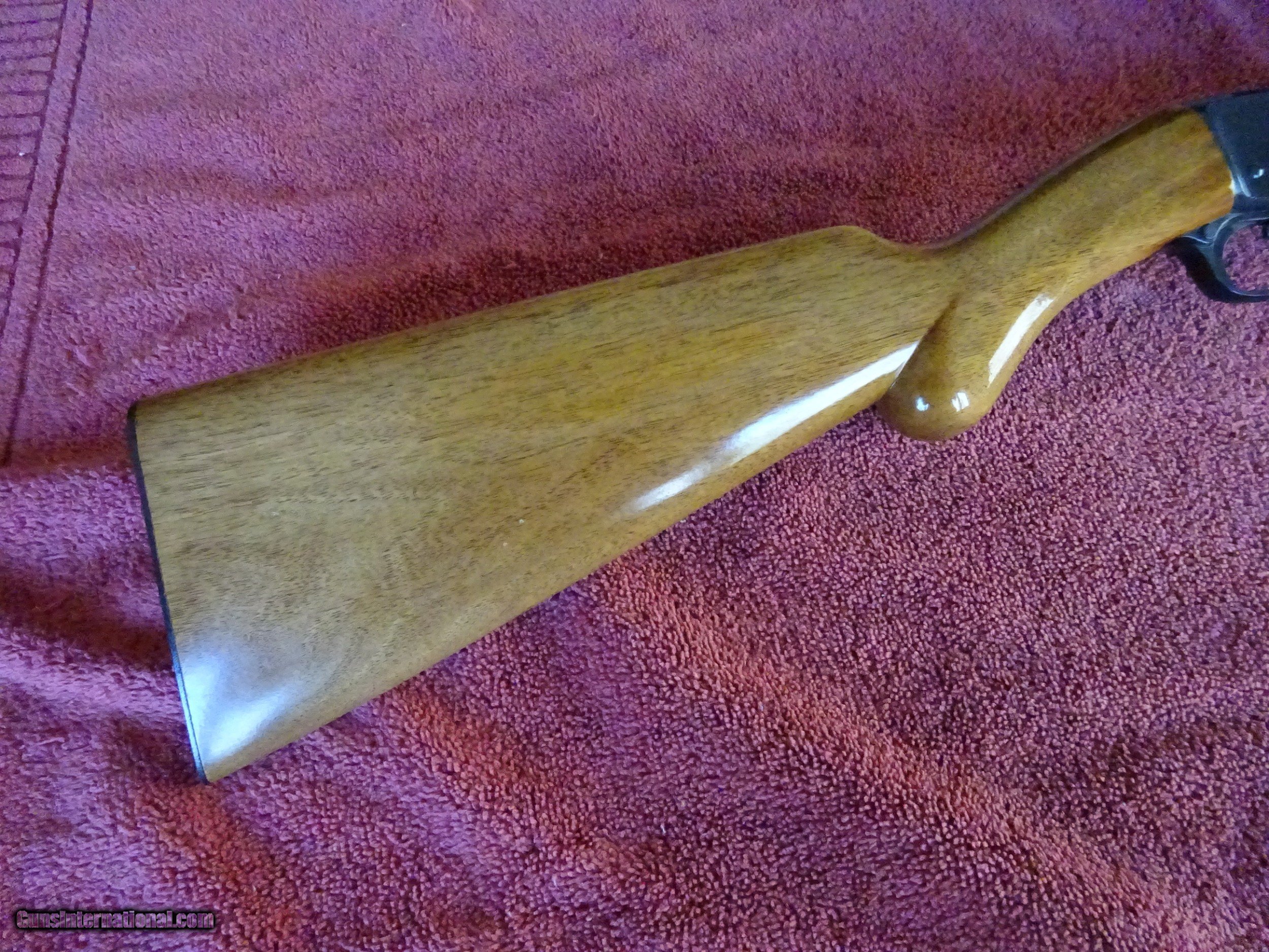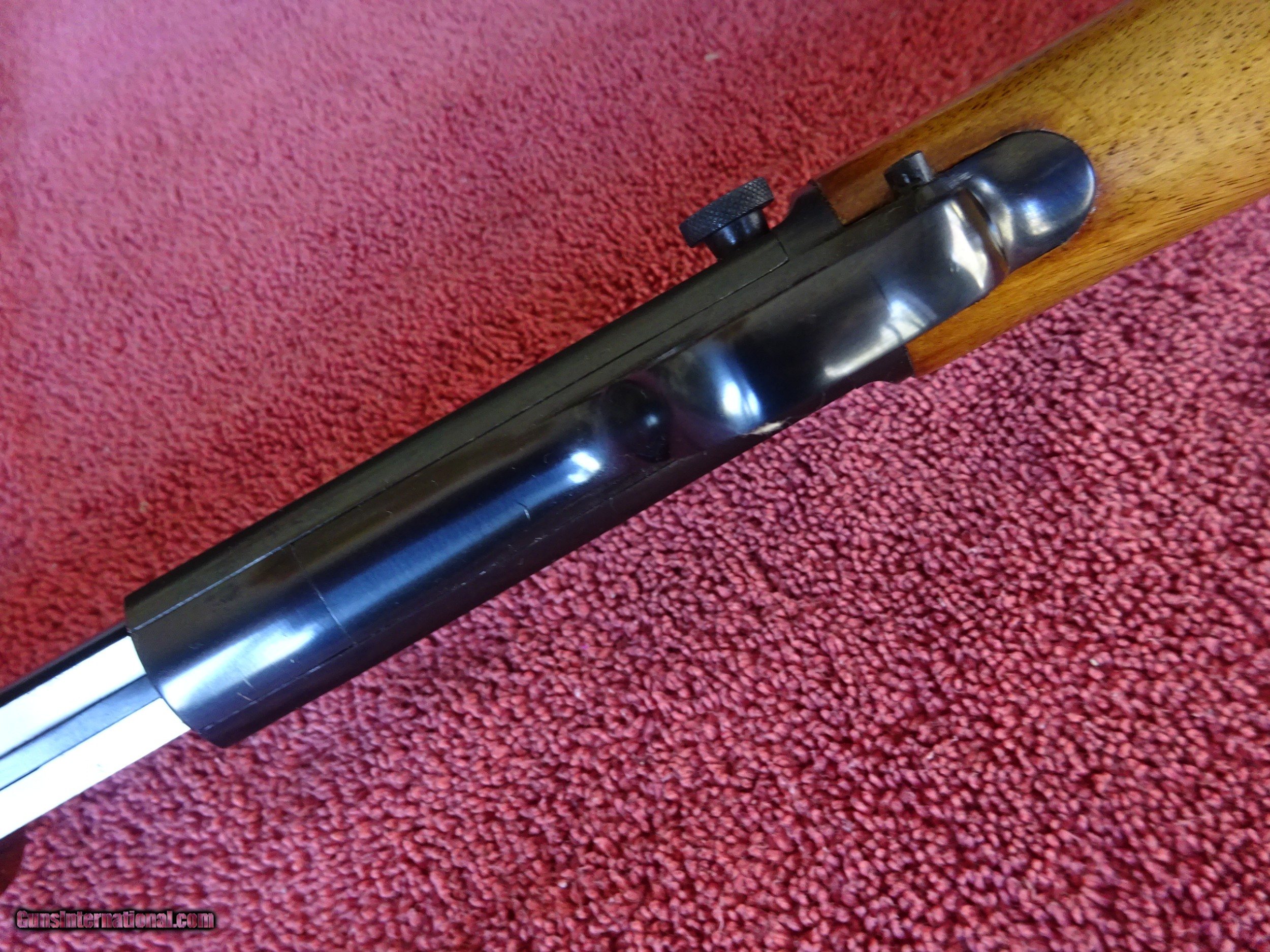 Description: BROWNING TROMBONE, BARREL MARKED "FABRIQUE NATIONALE D'ARMES DE GUERRE - HERSTAL BELGIQUE BROWNING PATENT DEPOSE". MIRROR PERFECT BORE, 99% BRIGHT BLUE, GROOVED RECEIVER. BELGIAN PROOF MARKS ON SIDE OF BOLT, TOP OF BARREL AND FRAME. SIDE OF BARREL STAMPED 22L. ROUND KNOB GRIP STOCK, STEEL BUTTPLATE, 15 GROOVE FOREARM. EXCELLENT WOOD FINISH, MINOR HANDLING MARKS. HALF INCH HAIRLINE CRACK ON RIGHT SIDE OF FOREARM. 100% ORIGINAL CONDITION. $1650.00 + $50.00 Insured shipping to an FFL address. See all Pats gun listings on this site! We also have hundreds of pieces of ORIGINAL gun company advertising & memorabilia available for sale on our site SPORTINGCOLLECTIBLES. We have no reprints or reproductions. Email for more information. SOLD Curio/Relic: Yes |