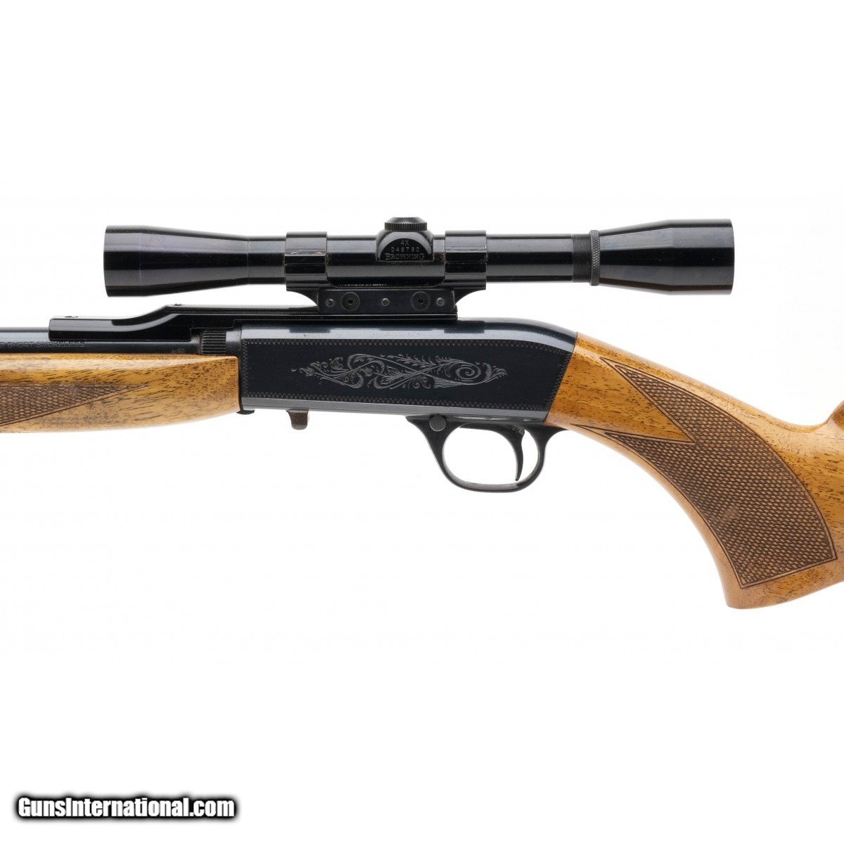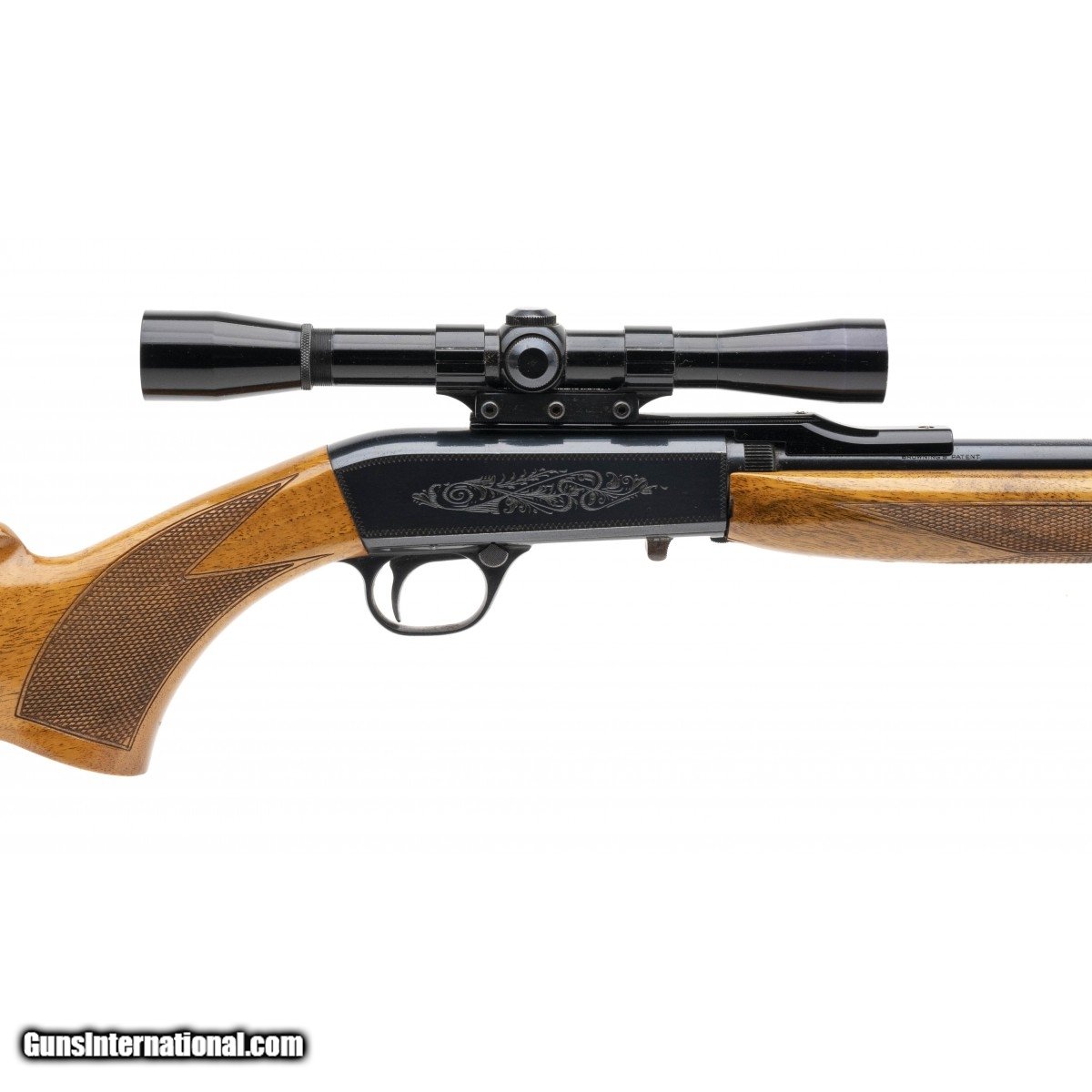 SN: 8E25129. Made in . .22 Short with a 22"" barrel. Bore is in very good condition. Belgium made Browning semi-automatic takedown rifle. Finish in is very good condition with 95% of factory blued finish retained with speckled wear on receiver. Checkered wood stock is in very good condition with strong wood checkered. Overall condition is very good. Comes with Browning 4X scope.
