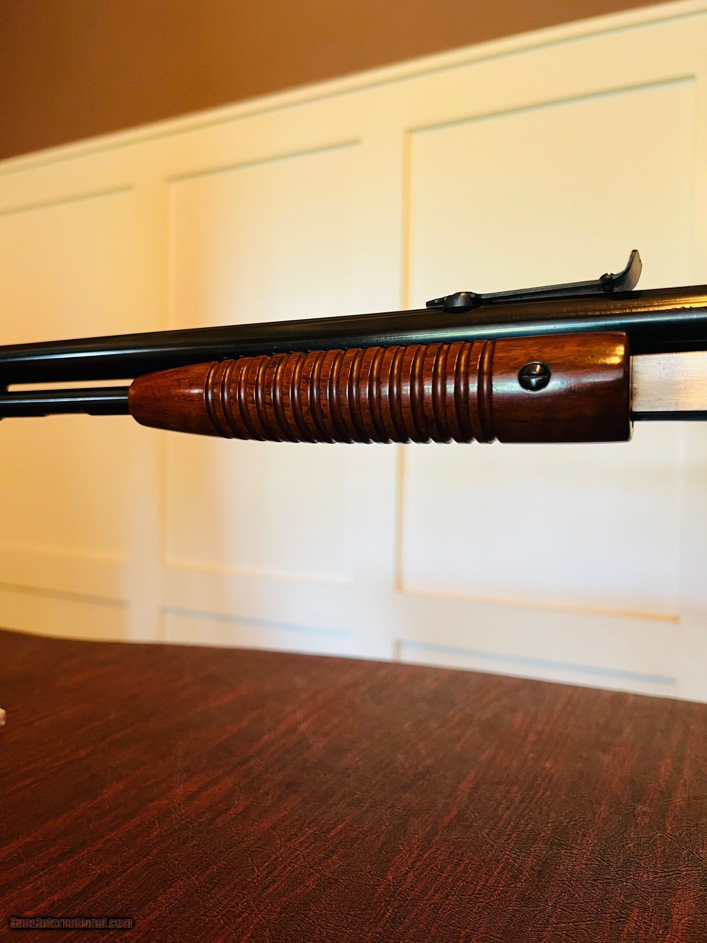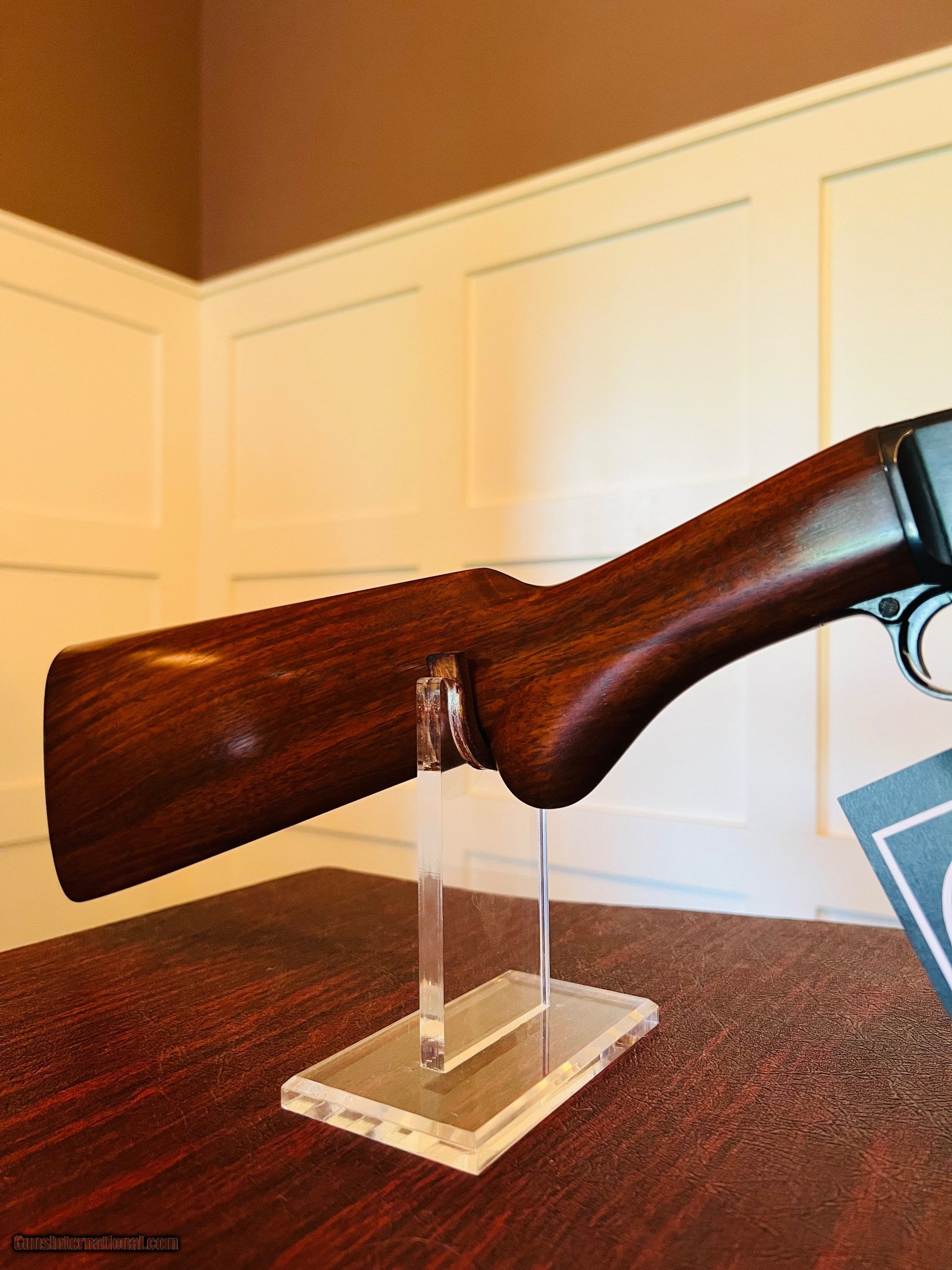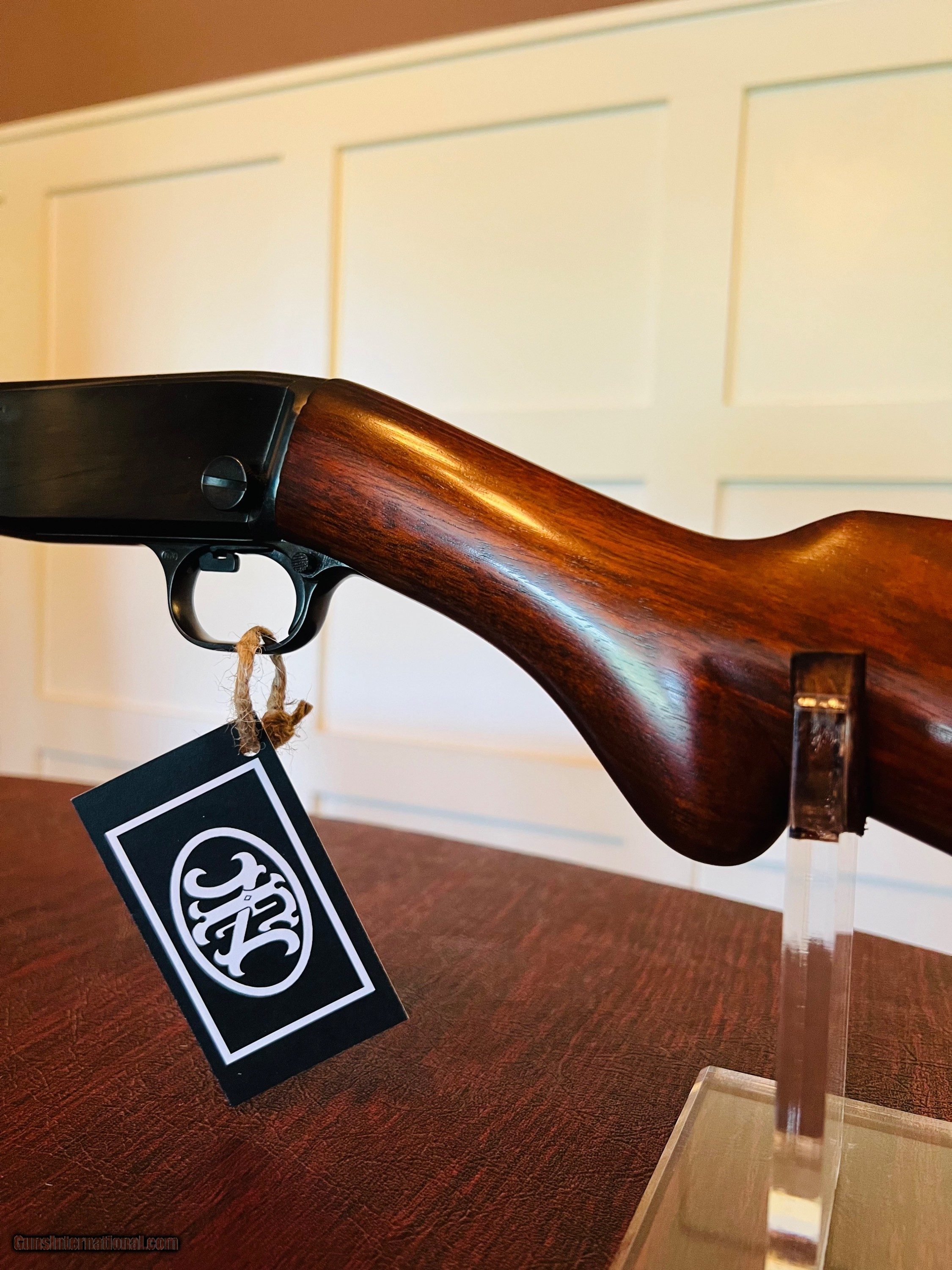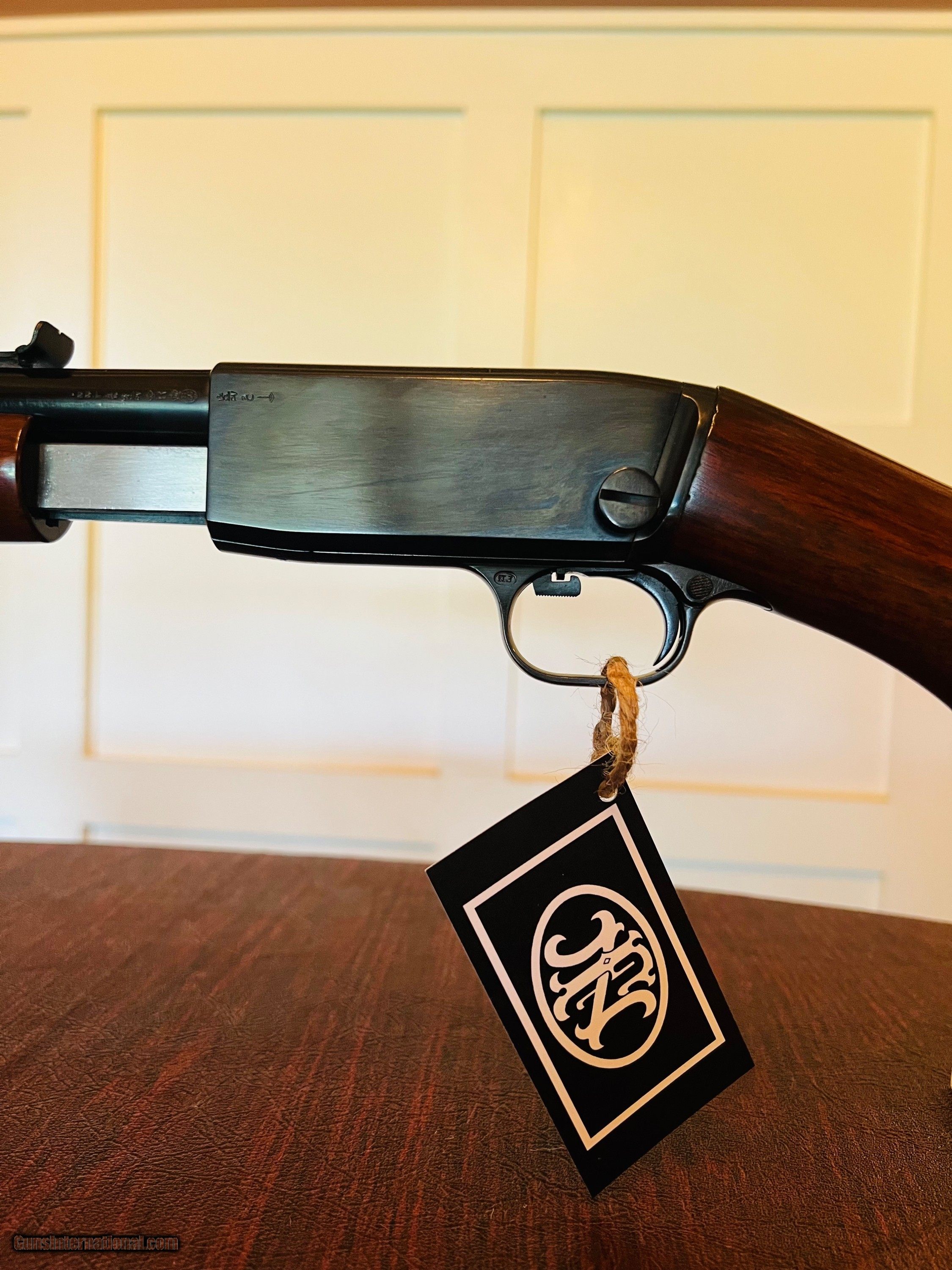 Description: SOLD This 22 pump action Trombone is brand new! This gun is a pre- WW2 production rifle. It is in excellent condition just take a look for yourself! Beautiful walnut stock. FN Herstal and often referred to as Fabrique Nationale or simply FN, is a leading firearms manufacturer based in Herstal, Belgium, and former vehicle manufacturer. It is currently the largest exporter of military small arms in Europe. The FN Browning Trombone is a pump-action long takedown rifle designed by John M. Browning in 1919.[1] It was designed by FN Herstal, who made a total of 150,000 from 1922 to 1974.[1] It was imported into the U.S. by Browning Arms. The fine staff at Arts Gunshop in Hillsboro, Missouri has done the absolute best work for us. Cowboy talks with their staff on a regular basis. We are not affiliated under no circumstances with Arts Gunshop in any way. However, with that being that being said, if you are purchasing from any other dealer and have any questions about a guns authenticity, it would be worth it to you to have the dealer ship it to them to have them do a full inspection of that firearm so that you will know exactly what your buying. The staff at Arts Gunshop are by far the best at what they do. They do everything from full restoration to selling guns. We look to Arts Gunshop as the best in the U.S. in regard to the services they provide and the work they have done for our shop. Again, we are not in any way affiliated with Arts Gunshop. We only want to share with others their fine work they have provided for us. We are a small business who believes in giving credit where credit is due. Jacks pawn and guns is a full service dealer carrying every modern brand firearm such as Colt, Sig Saur, FN, Glock Kimber, Beretta shotguns, Henry rifles and Ruger American Rifles just to name a few. We want to thank the fine staff at Jacks pawn and gun for working with us over the years and being so helpful. You will never meet nicer or more helpful business owners like Brad and Beverly Dixon. They run the nicest mom and pop gun shop in Dalton, Ga. If you are in the market and happen to be around Dalton, Ga and happen to be looking for a nice gun or even lessons on gun safety or how to properly use a gun they offer classes in their very own shooting range they have on site. It would be worth your while to stop in and take a look around. You will not be disappointed. We are in no way affiliated with Jacks Pawn and Guns. NO RETURN ****** Our policy in regard to No Inspection/ No Return is as follows: We now feel with the pictures we provide for each gun in our inventory ( in which you can expand something as small as a pin head to fit your entire screen) you can see of the gun in its complete entirety and get a very good view of the quality of the gun on the internet. When we first started dealing in guns years ago, you’d have to rely on our description over the phone, that’s now no longer the case. If there’s a major error that we missed, we’d of course take the gun back. But we do feel from the pictures and online descriptions that you should be able to determine from this information if you’d like to purchase the gun. This gun will be shipped in a hard carry case for protection during the shipping process. Add 75.00 for shipping. SOLD Curio/Relic: Yes Rifle Caliber: .22 Short Manufacturer: FN Model: Browning 22 Chambers: 22 Condition: Excellent Metal Condition: Excellent Wood Condition: Excellent |