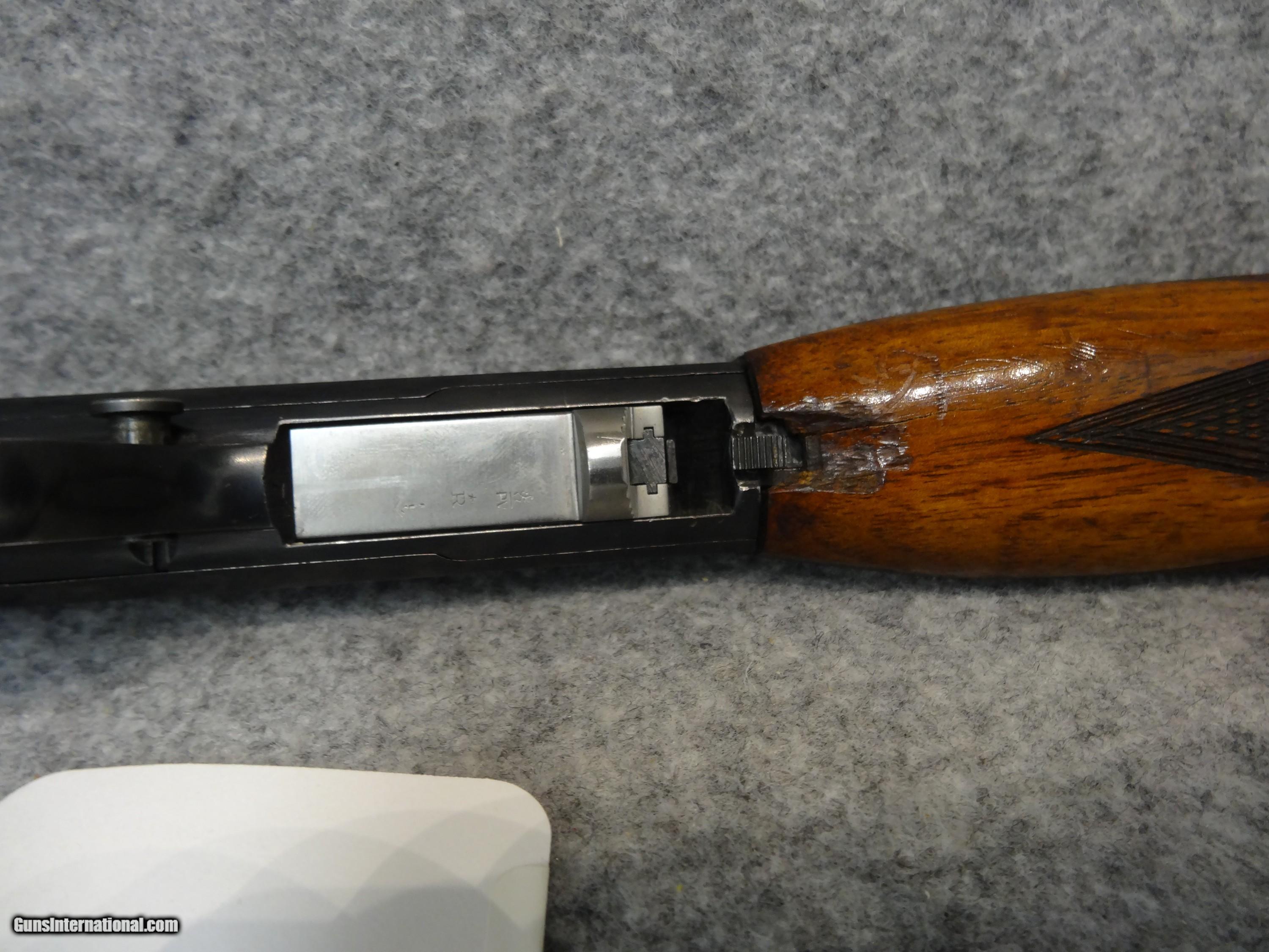 Description: Inventory #: G-85545-1 Manufacturer: Browning Model: SA22 Caliber: 22 LR New / Used: Used This is a Browning model SA22 semi-automatic rifle chambered in 22 LR. It features a 19” barrel, rare factory wheel rear sight, takedown action, and stock fed magazine tube with a 10 round capacity. It was built in Belgium in 1956 and is a first year of import for the USA. This rifle is in good used condition with some minor handling wear. SOLD Rifle Caliber: .22 Long Rifle Manufacturer: browing Model: sa22 |