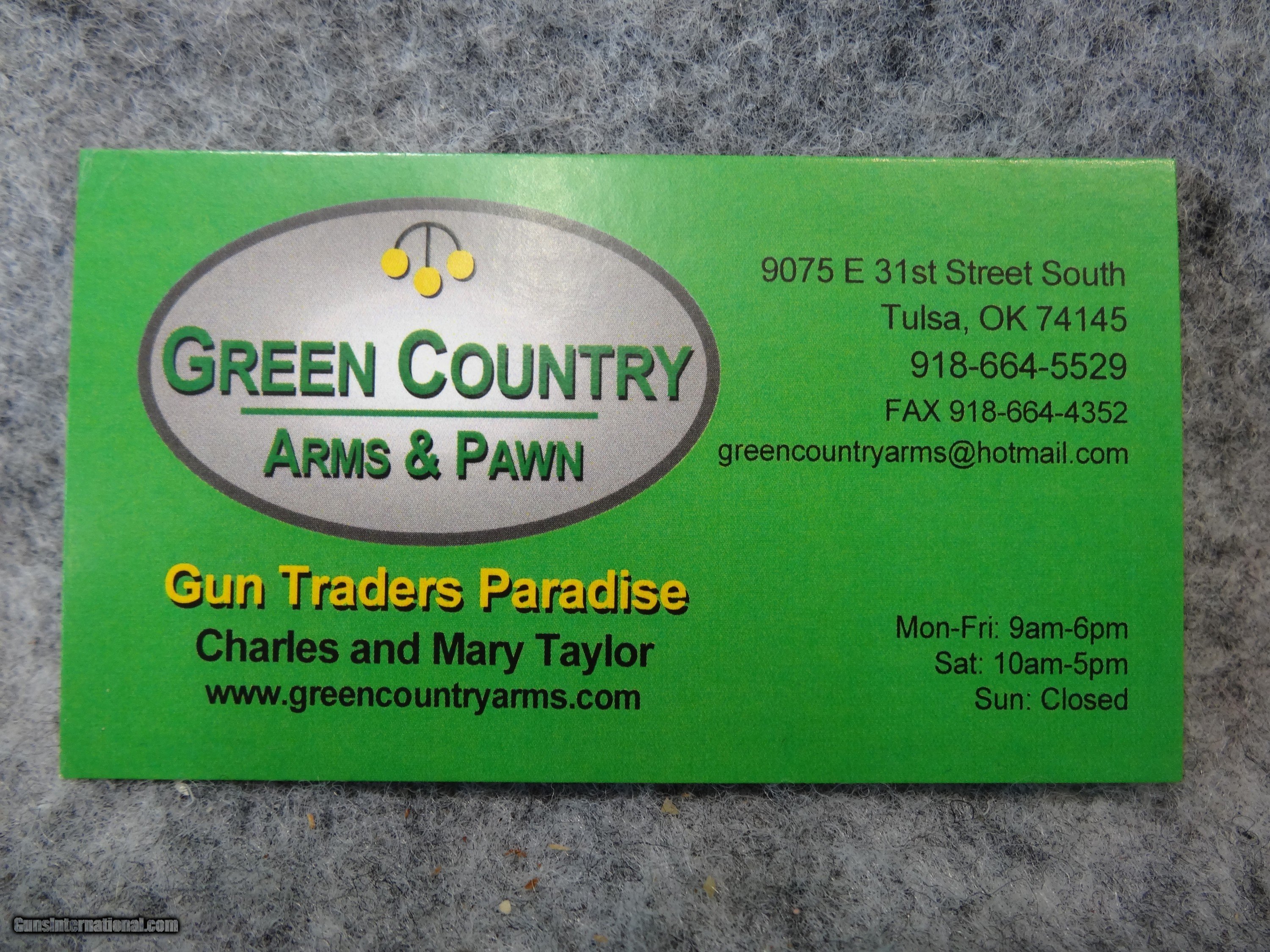 Company: Green Country Arms & Pawn, Inc Member Since: 5/18/16