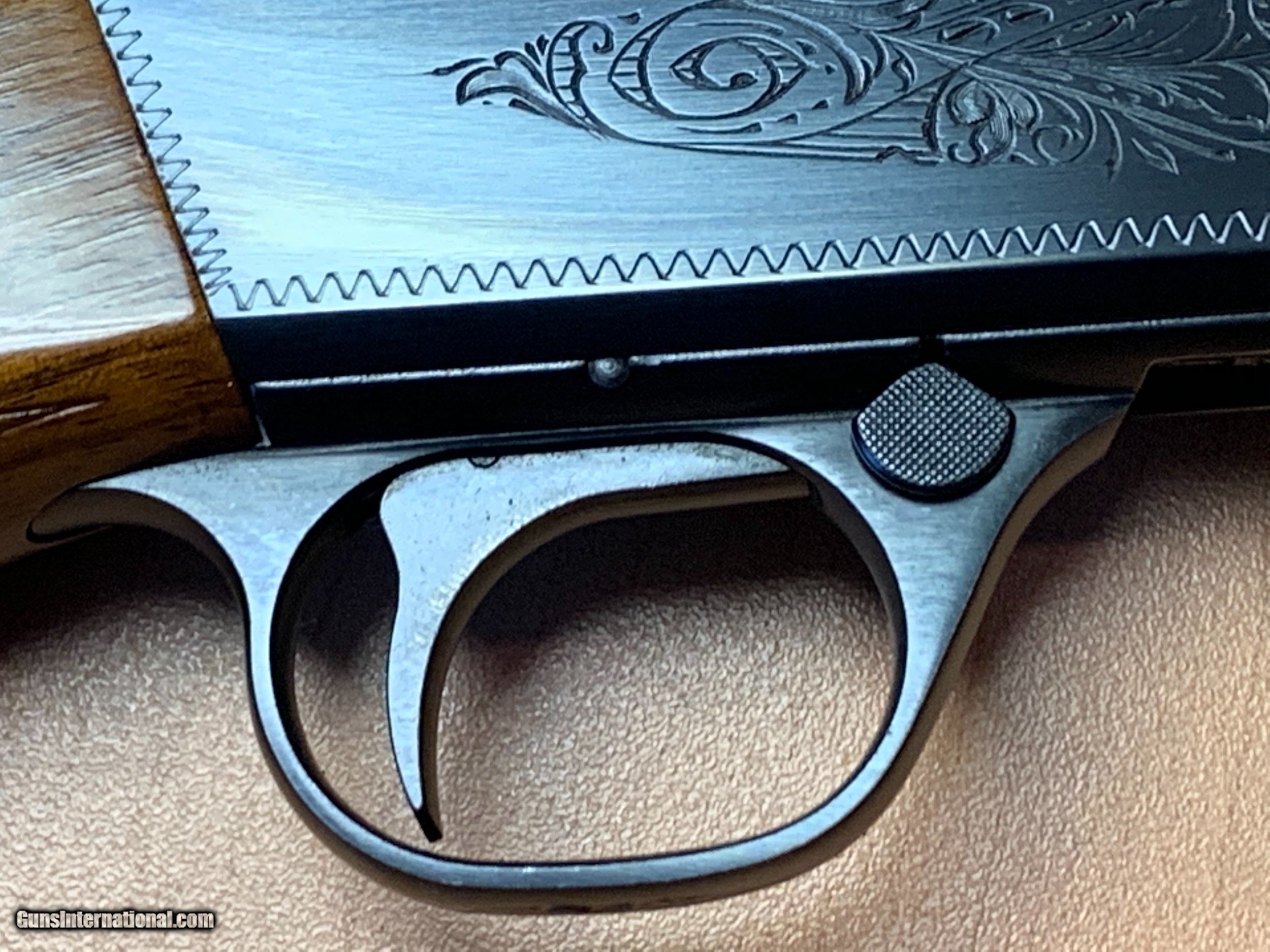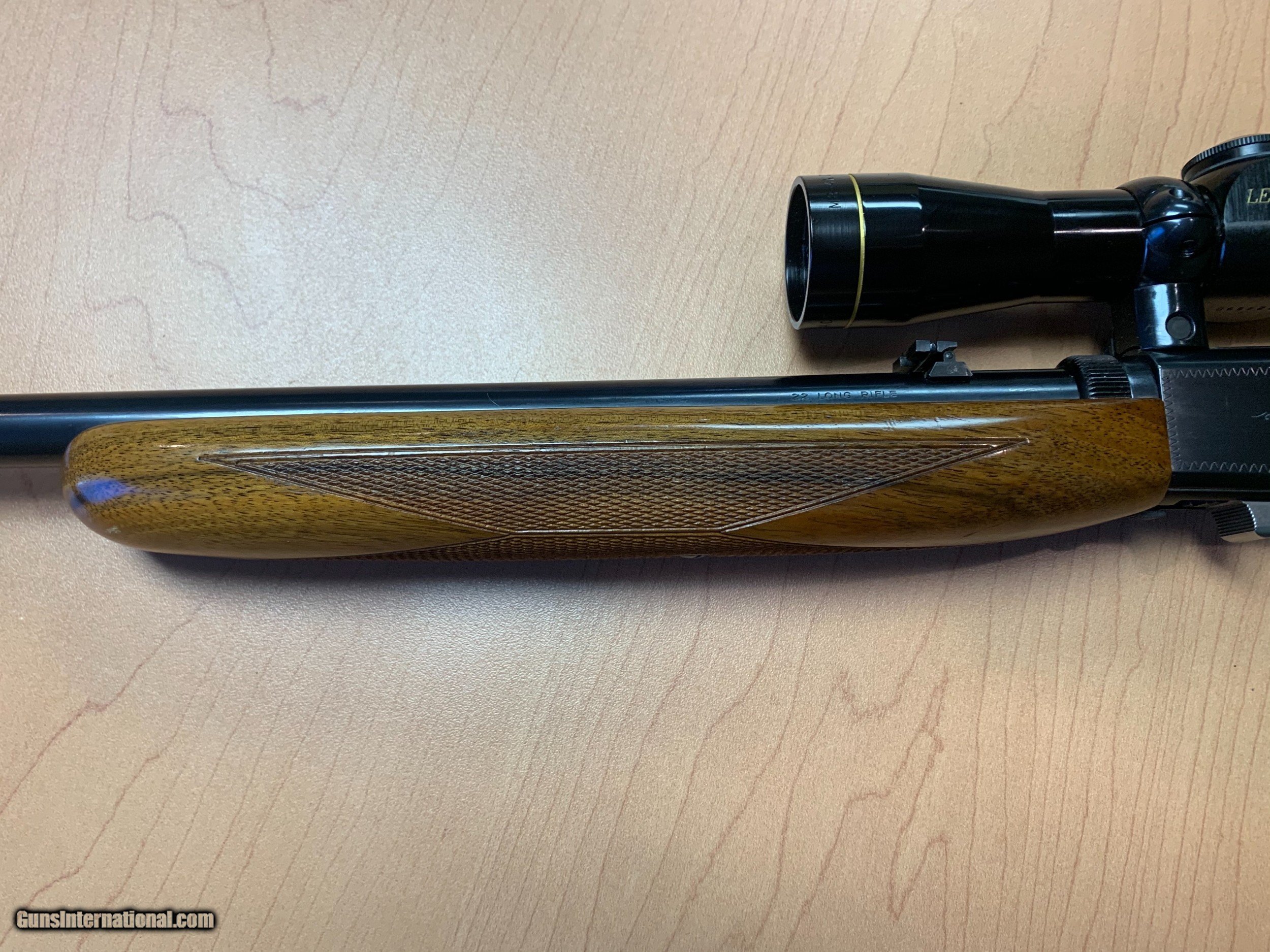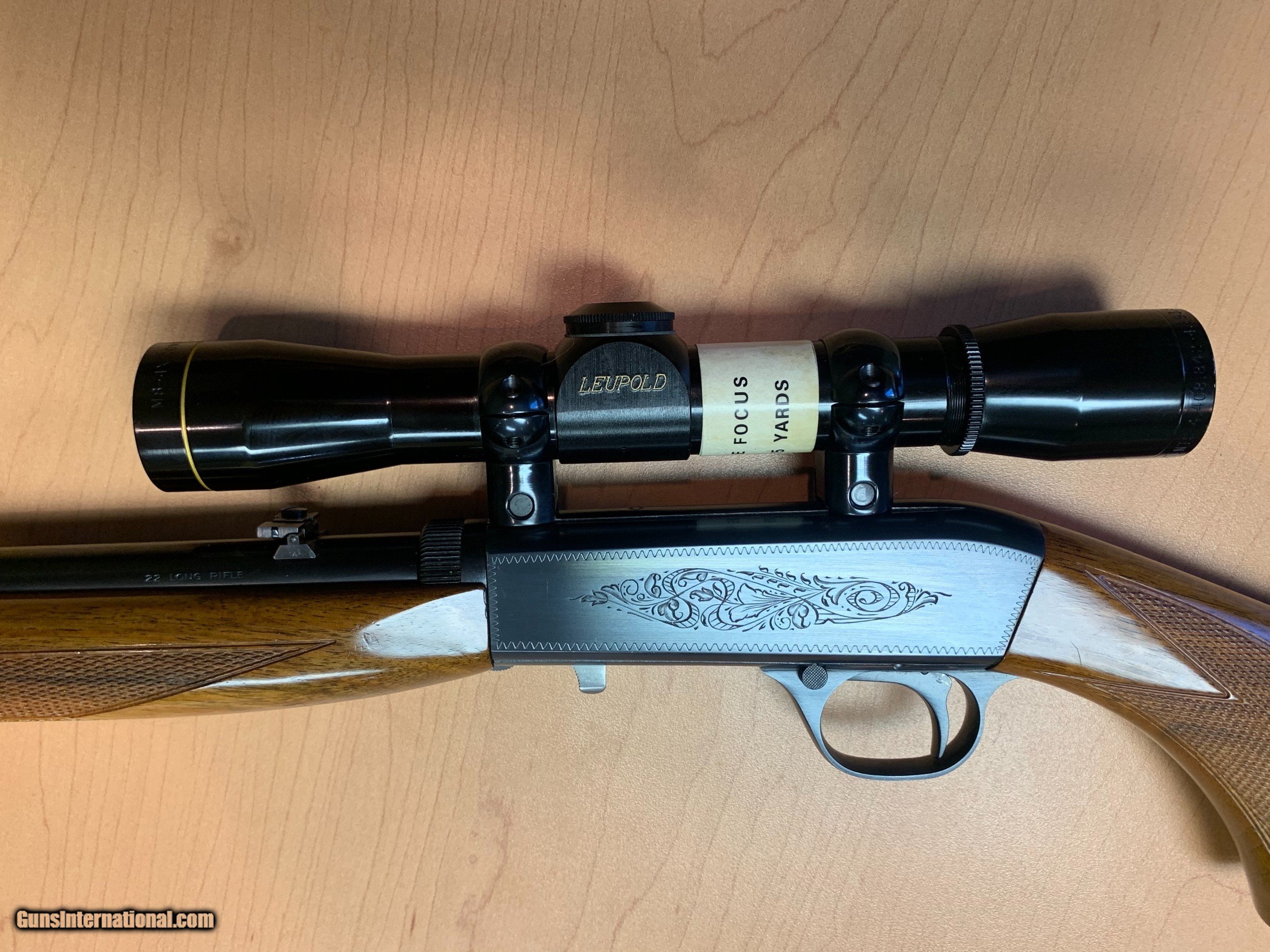 Description: Belgian Browning .22 Semi-Auto Rifle SN. 6T40053 built in 1966 with Leupold M8-4X Compact scope. This rifle is in excellent shape and retains 99% plus of its original bluing with only one blemish under the scope. It appears to be a set screw mark on top of the receiver possibly from a scope mount. The wood too is in excellent shape with only minor handling marks on the stock and forend. This gun has been test fired to verify that it functions as it should. We are selling this gun for an estate. Purchaser pays all shipping and insurance. Three day inspection period applies. $1000 obo SOLD Rifle Caliber: .22 Long Rifle Manufacturer: Browning Model: Semi auto rifle grade1 Serial Number: 6T40053 Barrel Length: 19 1/4” Chambers: 22 long Condition: Very good Metal Condition: Excellent Wood Condition: Very good Bore Condition: Excellent Action: Semi Auto |