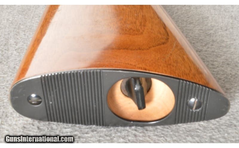 Description: Browning Semi-Auto 22, also known as the ATD (automatic take down). This Browning is a lightly engraved, grade 1 with a 19.25" barrel and features a fixed front sight with an adjustable flip up rear sight, rounded smooth top receiver, nicely checkered stock and fore end. The SA-22 ejects fired brass out the bottom. This rifle is in very good used condition with signs of wear commensurate with age and use. .22 Long Rifle SOLD Chambers: 10=1 semi auto. Bore Condition: Strong bright bore. Barrels: 19.25" barrel. Triggers: Single. Stock Dimensions: LOP 13.75". Fore End: Checkered. Butt Pad: Metal. Weight: 4.5 lbs Sights: Fixed adjustable. Item Location: Owatonna, MN |