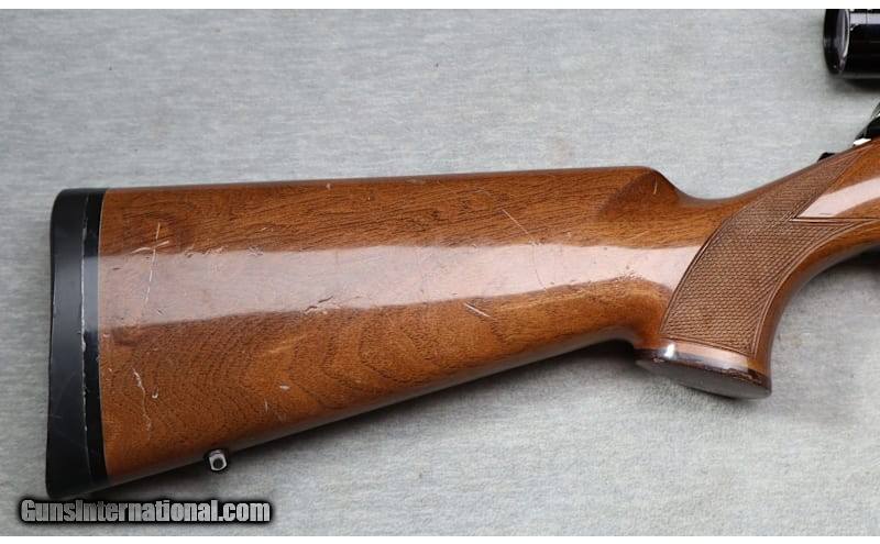 Description: Good condition, some finish wear, many small nicks & scratches. Browning bolt action rifle, 22" barrel, blued metal, smooth action & crisp trigger and Leupold 3.5-10x scope. Gloss finish checkered wood stock with contrasting forend tip, decorative grip cap, RH cheekrest, Browning recoil pad and sling swivel mounts. .243 Winchester Chambers: Bolt action Metal Condition: Good Wood Condition: Good Bore Condition: Bright Barrels: 22 Triggers: Factory Stock Dimensions: 13 1/2" LOP Fore End: Checkered Butt Pad: Browning pad Sights: Leupold Vari-X III 3.5-10x scope Item Location: La Vista, NE Price: $749.99 Contact Seller |