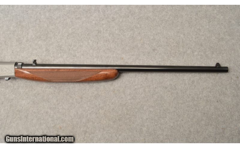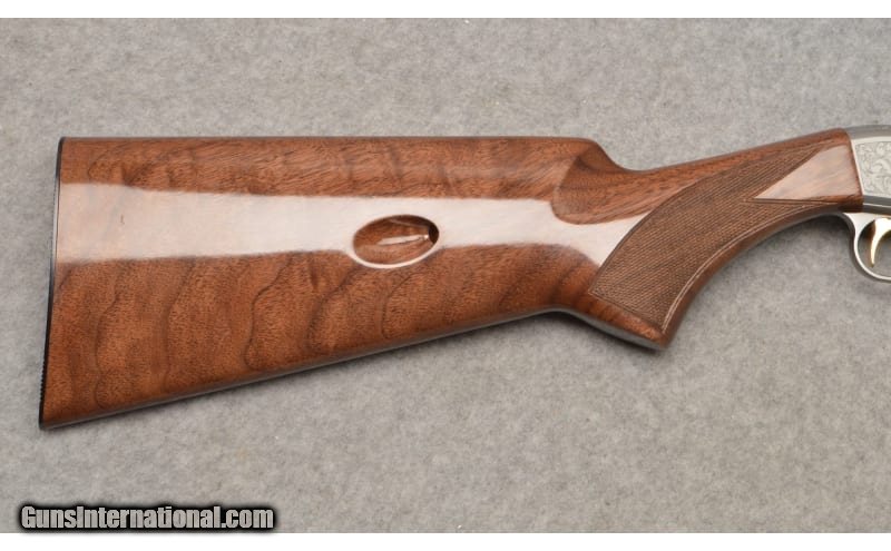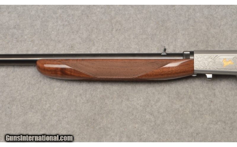 Description: This is an extremely nice Browning Arms Model SA-22 Grade VI semi auto rifle in .22 long rifle. This rifle is almost too nice for words. The richly blued barrel and gray engraved take-down receiver frame are excellent. The blued 19" barrel is excellent with sharp clear rifling in its bore. The factory gold-plated trigger is smooth and light with a positive crisp release. The Grade VI figured walnut stock is gorgeous. This SA-22 rifle is a take-down model with an integral tube magazine access in the butt stock. This rifle from appearances looks to be unused. The SA-22 has been in production since it was first patented in 1914. The popularity for this rifle remains high even today. This Browning rifle comes with the factory cardboard box and owners operation manual .22 Long Rifle SOLD Metal Condition: Excellent Wood Condition: Excellent Bore Condition: Excellent Barrels: 19 Triggers: Factory Gold-Plated Curved Smooth Stock Dimensions: LOP 14" Height 5" Length 37 Fore End: Matching Checkered Grade VI Dark Walnut Butt Pad: Black Grooved Hard Plastic with Loading Port Weight: 6 lbs. 0 oz. Sights: Front Fixed Brass Bead Blade with Rear Flip-Up Notch Item Location: West Chester, OH |