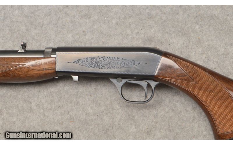 Description: This Browning Arms Model SA-22 take down semi auto rifle in .22 short rimfire is in very good condition. The SA-22 was one of Brownings finale designs and one of the most desirable. The SA-22 rifle features an internal tube 16 round magazine that feeds from the rear of the butt stock. The deeply blued barrel and lightly engraved receiver frame are very good. The blued 22" barrel is very good with sharp clear rifling in its bore. The checkered dark walnut stock and fore end are very good with only minor scuffs and abrasions on the butt stock. The curved smooth trigger is firm with a crisp release. You can own a piece of Browning history today. This Browning SA-22 does not come with a box or any other accessories. .22 Short SOLD Metal Condition: Excellent Wood Condition: Very Good Bore Condition: Excellent Barrels: 22" Blue Triggers: Factory Single Curved Smooth Stock Dimensions: LOP 14" Height 6" Length 39 1/2 Fore End: Matching Checkered Dark Walnut Butt Pad: Factory Grooved Black Hard Plastic Weight: 5 lbs. 1 oz. Sights: Front Fixed Post with Rear Folding Leaf Notch Item Location: West Chester, OH |