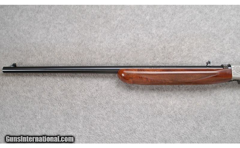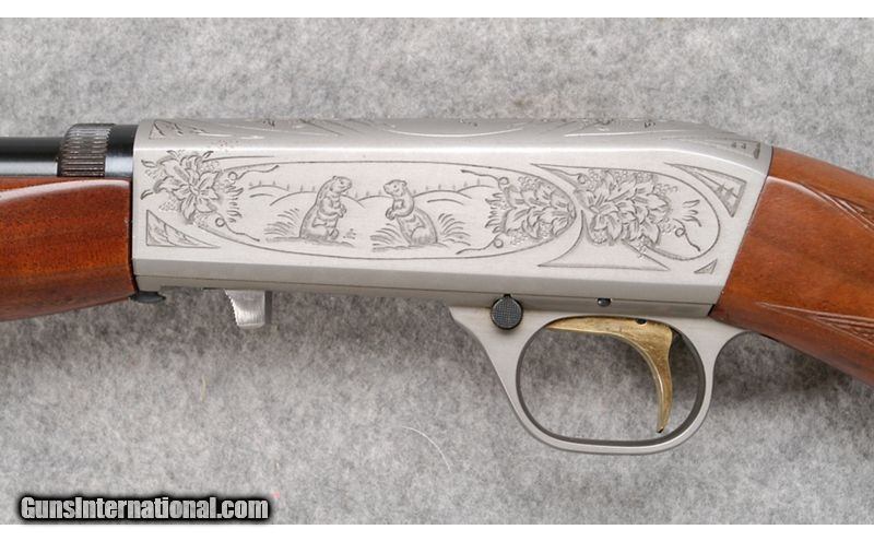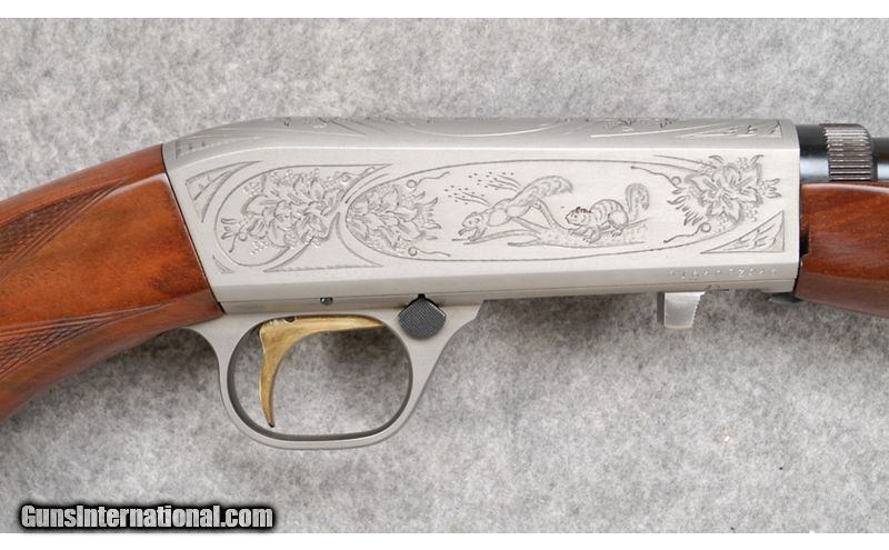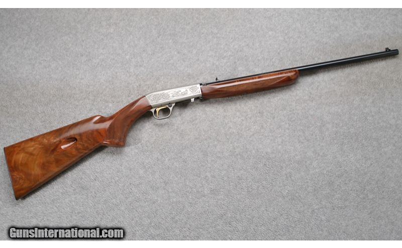 Description: .22 Long Rifle SOLD Chambers: Semi-auto repeater. Metal Condition: Very good. Wood Condition: Very good. Bore Condition: Very good. Barrels: "19"", blued. Triggers: Single. Stock Dimensions: 13 3/4" LOP. Fore End: Matching checkered walnut. Butt Pad: Factory butt plate. Weight: 5 lb. 4 oz. Sights: Factory iron sights. Item Location: Dundee, MI |