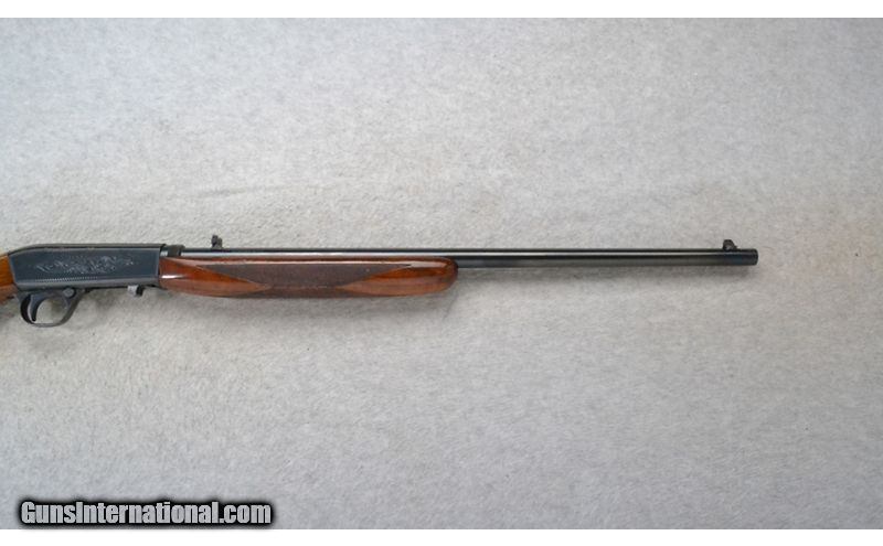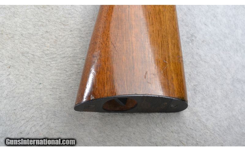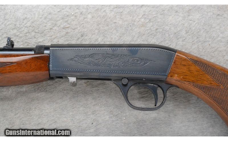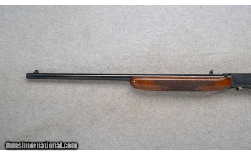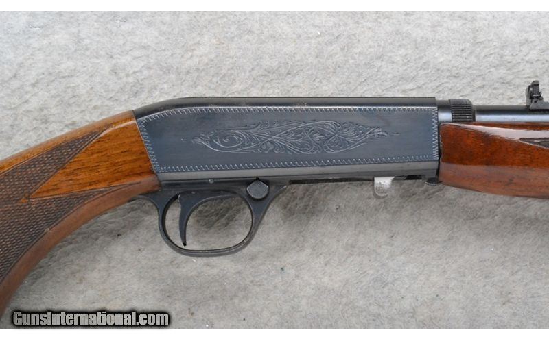 Description: This Browning Automatic Takedown Model is a semi-auto rifle in .22 Long Rifle Cal. It has a 19.5 inch barrel. A blade front sight and a folding adjustable notch middle sight. The receiver is dovetailed. The butt stock is a checkered grip walnut pistol grip. The forearm is a checkered grip walnut beaver style. The receiver is lightly engraved. Made in Belgium. .22 Long Rifle SOLD Chambers: Internal tube magazine. Metal Condition: "Good. Minor handling marks, freckling and pit marks. Wood Condition: Fair. Handling marks and many fine surface finish cracks. Bore Condition: Excellent. Barrels: 19.5 inch. Stock Dimensions: LOP 13 3/4 inches. Fore End: Checkered grip walnut beavertail style. Butt Pad: Grooved steel plate with a loading port. Weight: 4 lb. 14 oz. Sights: Blade front. Folding adjustable notch middle. Receiver is dovetailed. Item Location: Richfield, WI |